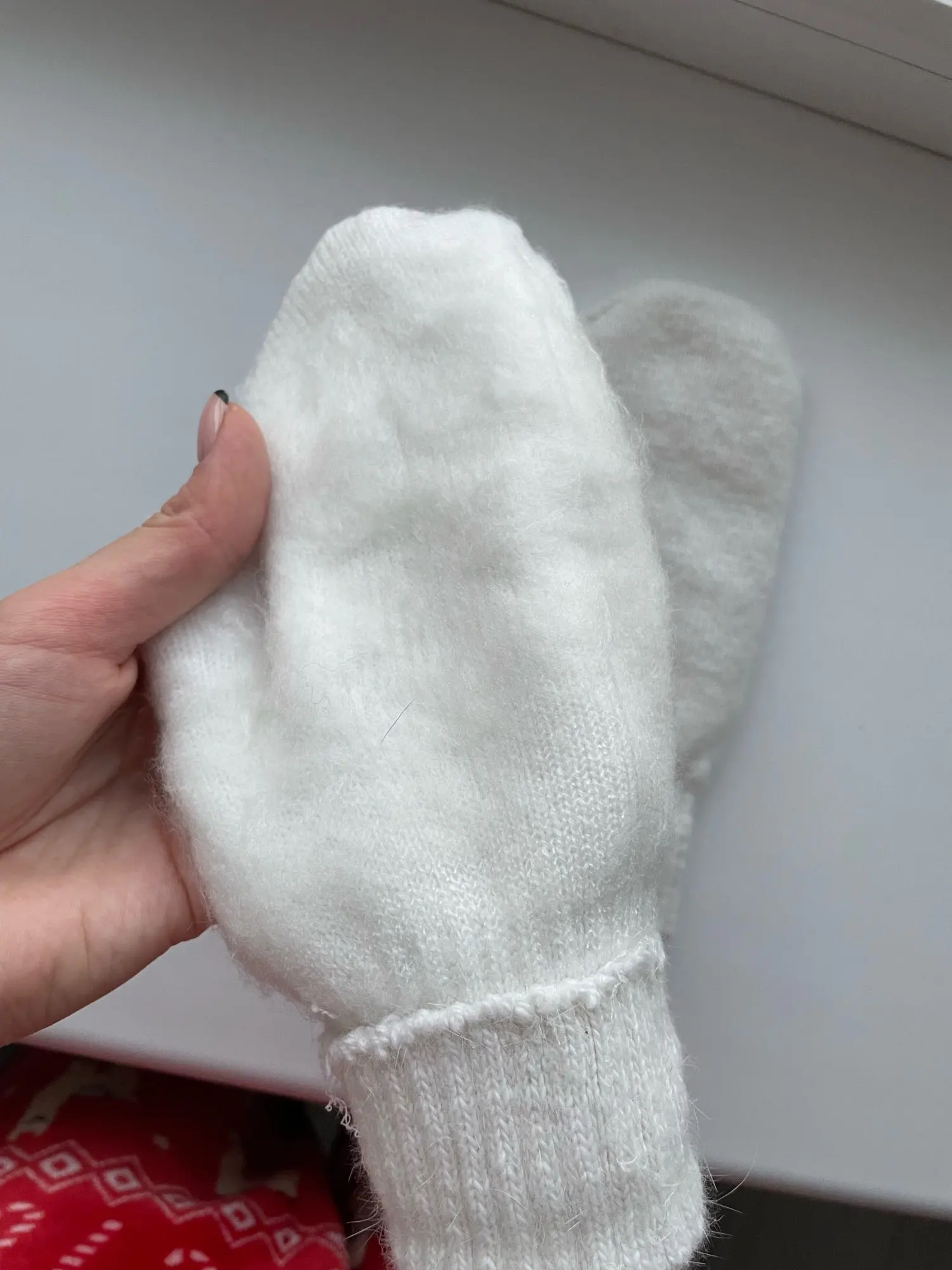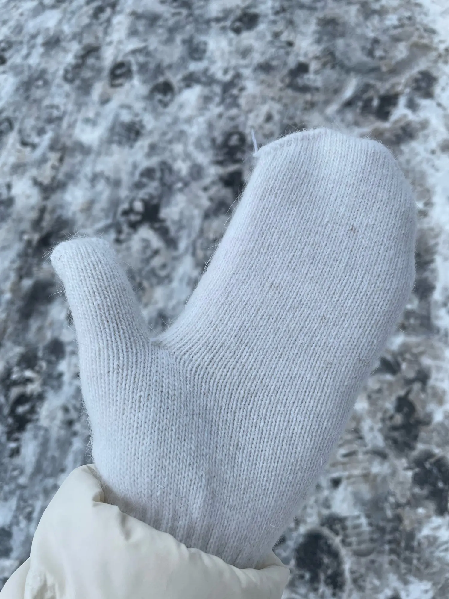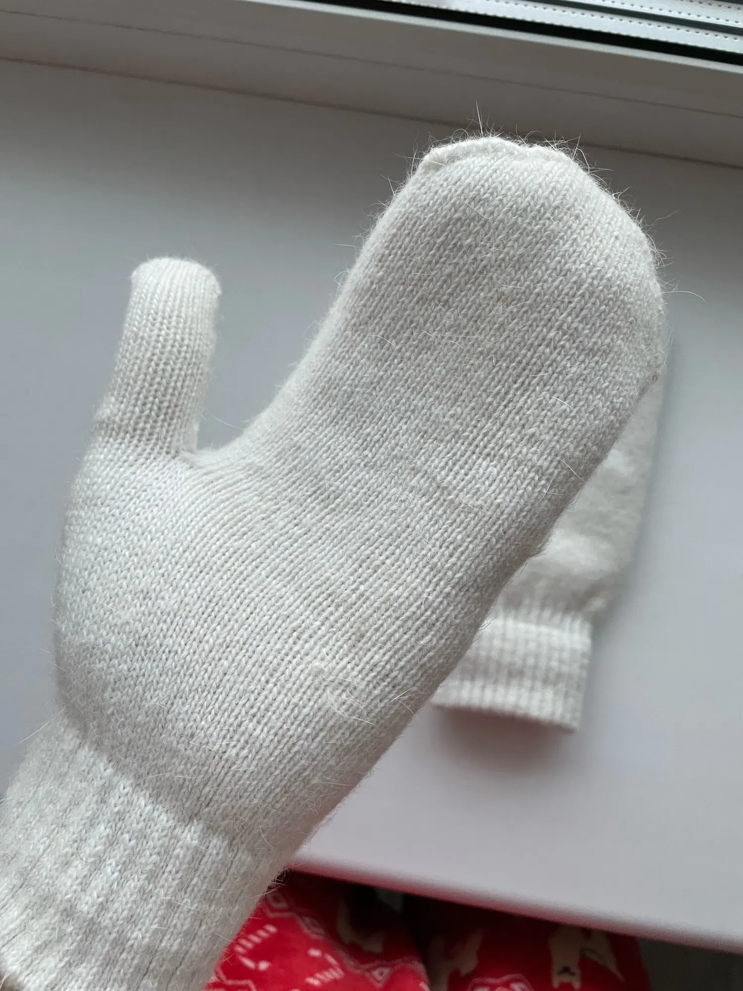 Отличные варежки, тёплые и молочно белые, для своей цены просто находка. В некоторых местах вшиты чёрные ниточки и есть пятнышко, не очень заметно, даже не знаю, отстирается ли или это пряжа такая. В любом случае, смотрятся отлично. В них тепло, в - 20 не замёрзли руки в них, но не жарко в них, комфортно. Рекомендую
