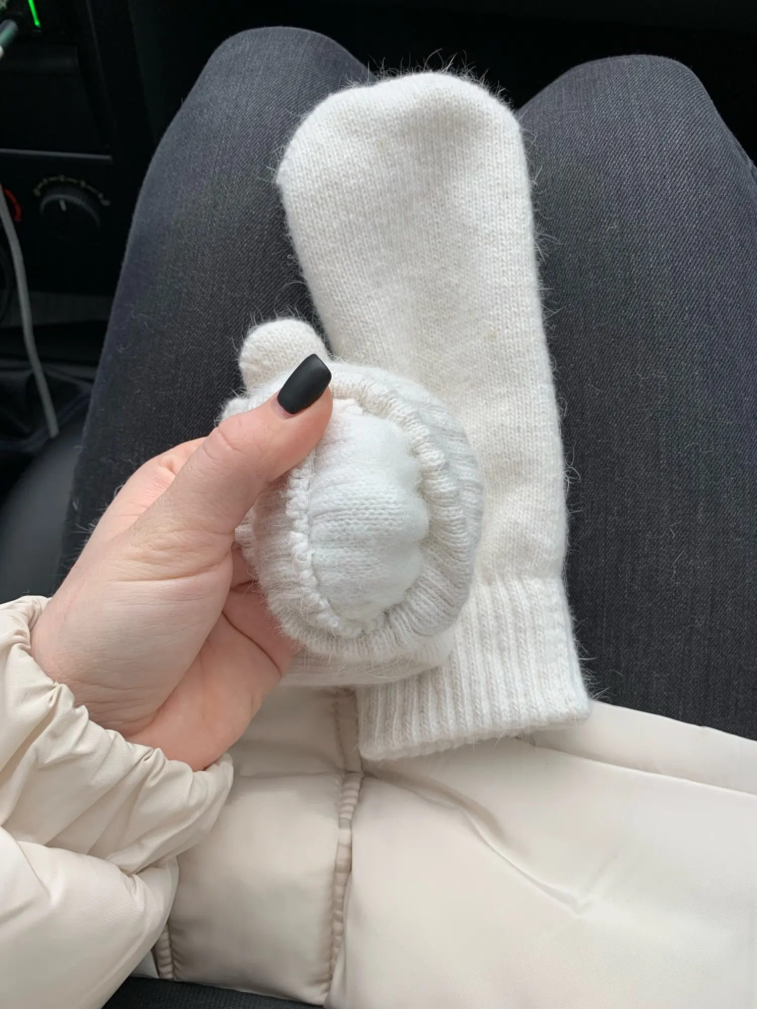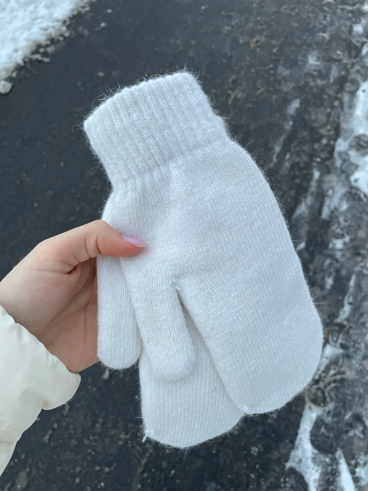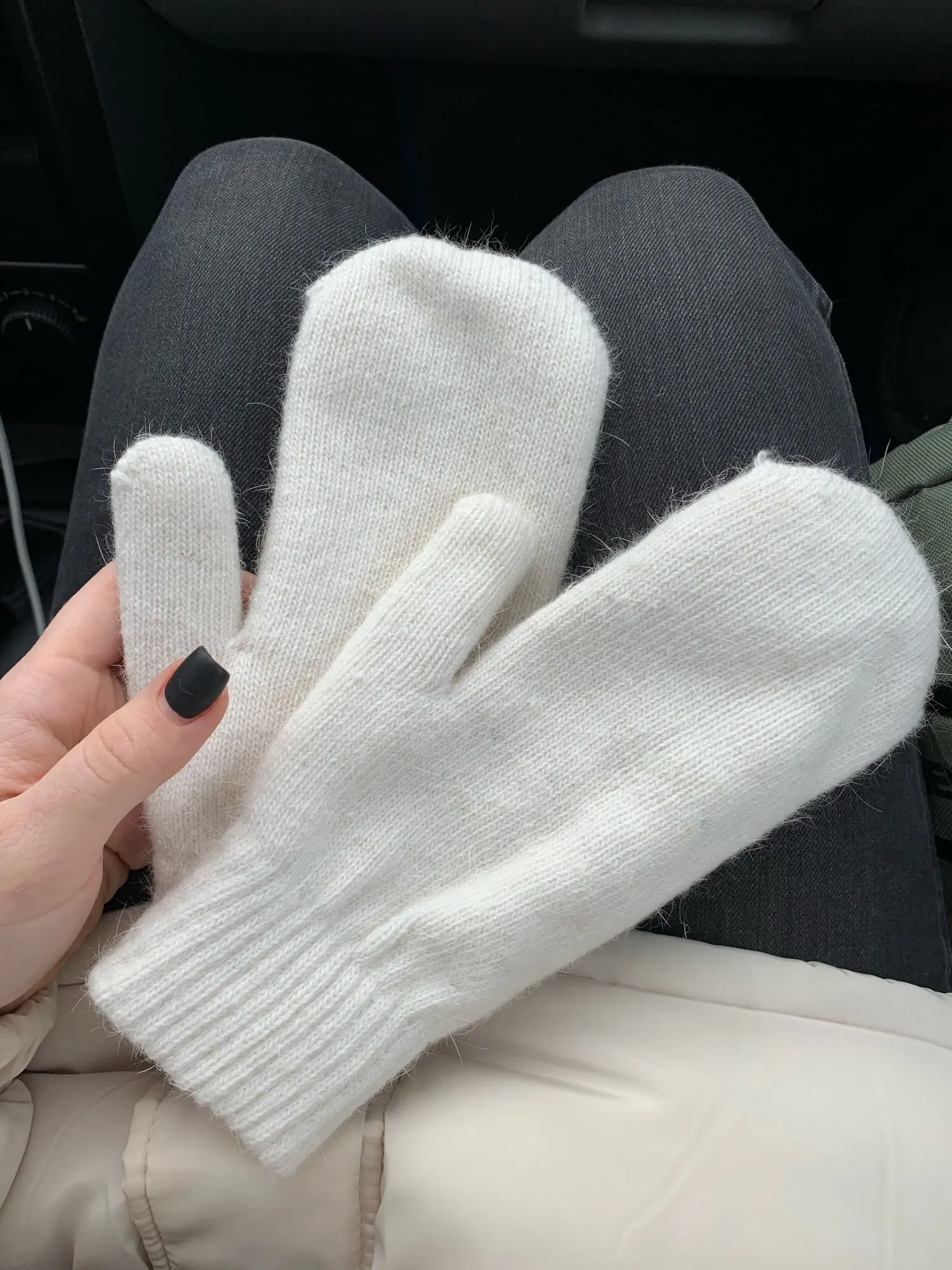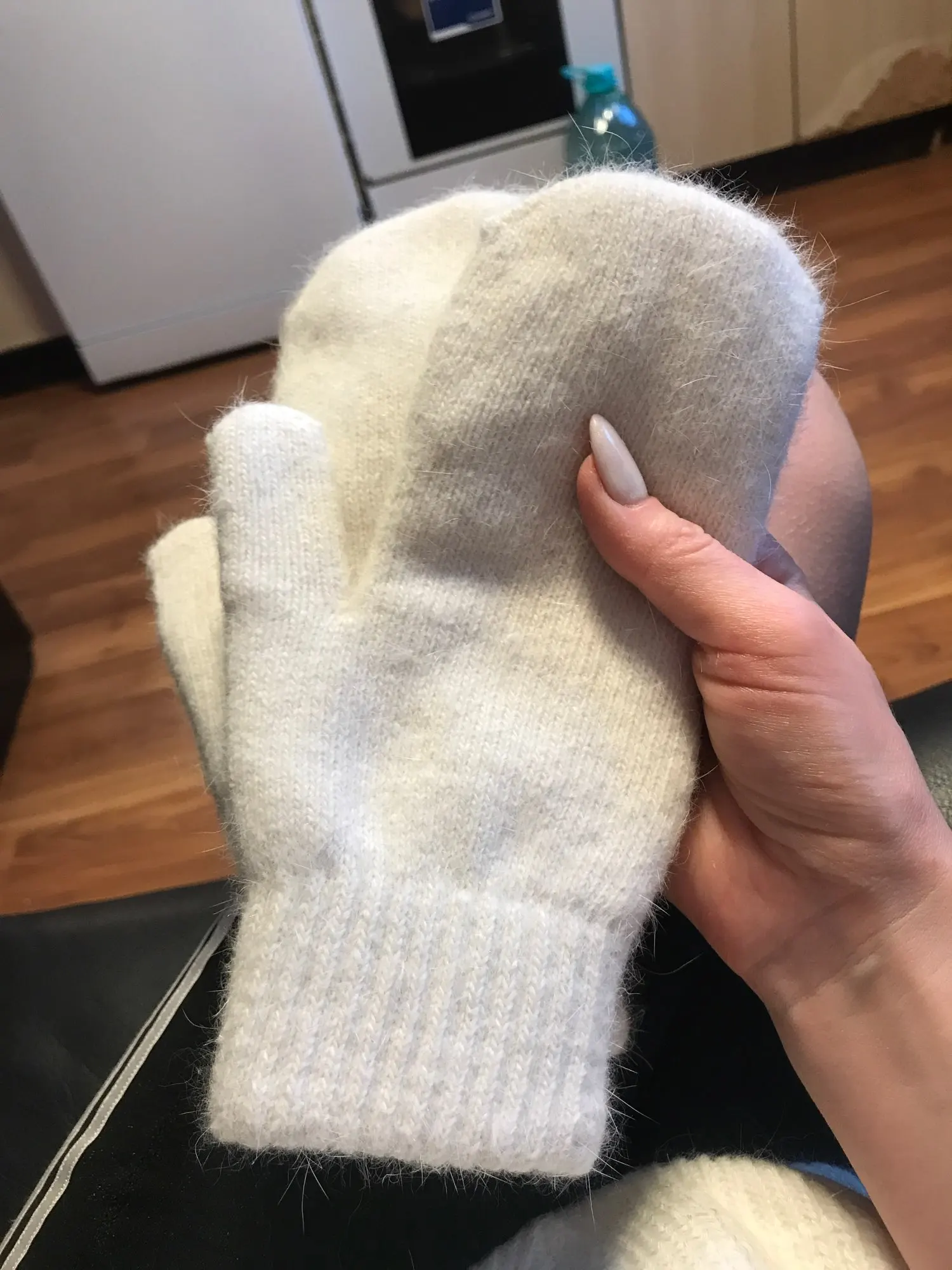 Отличные варежки, тёплые и молочно белые, для своей цены просто находка. В некоторых местах вшиты чёрные ниточки и есть пятнышко, не очень заметно, даже не знаю, отстирается ли или это пряжа такая. В любом случае, смотрятся отлично. В них тепло, в - 20 не замёрзли руки в них, но не жарко в них, комфортно. Рекомендую