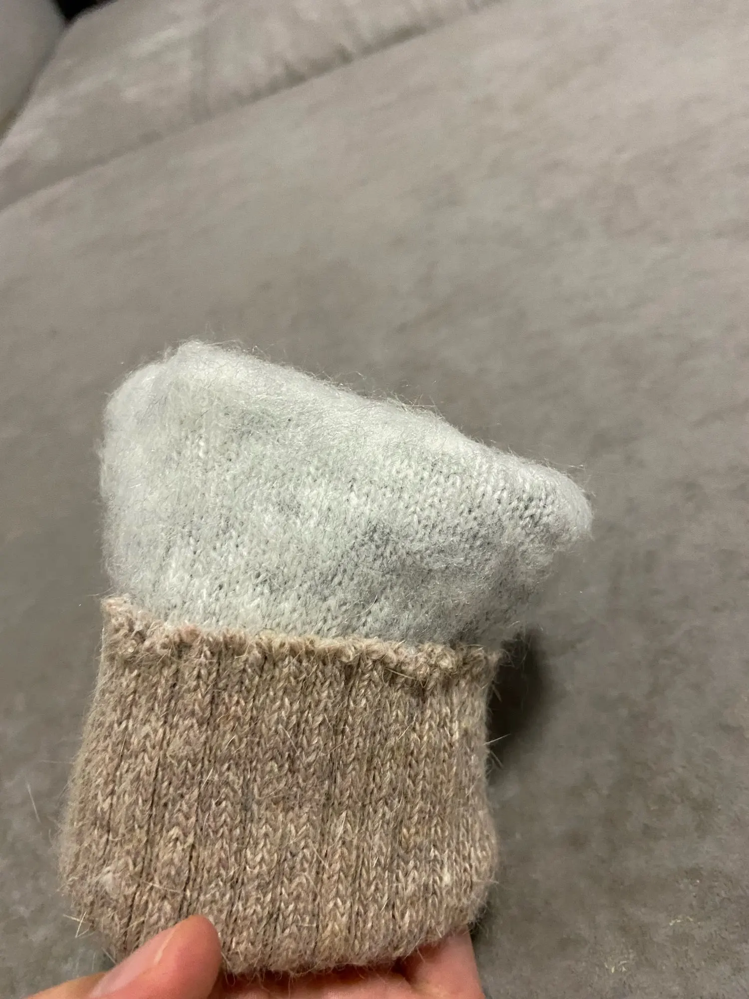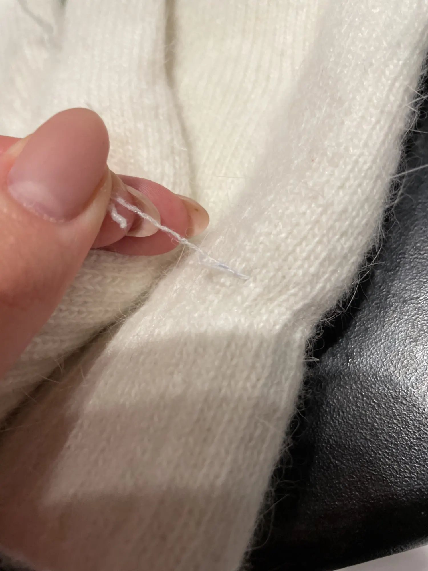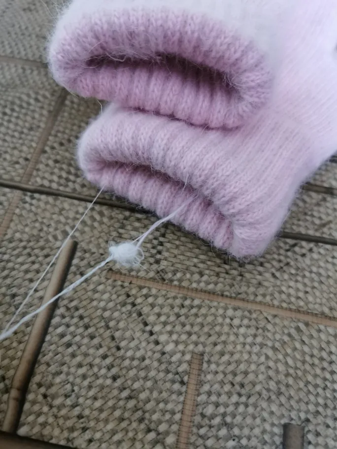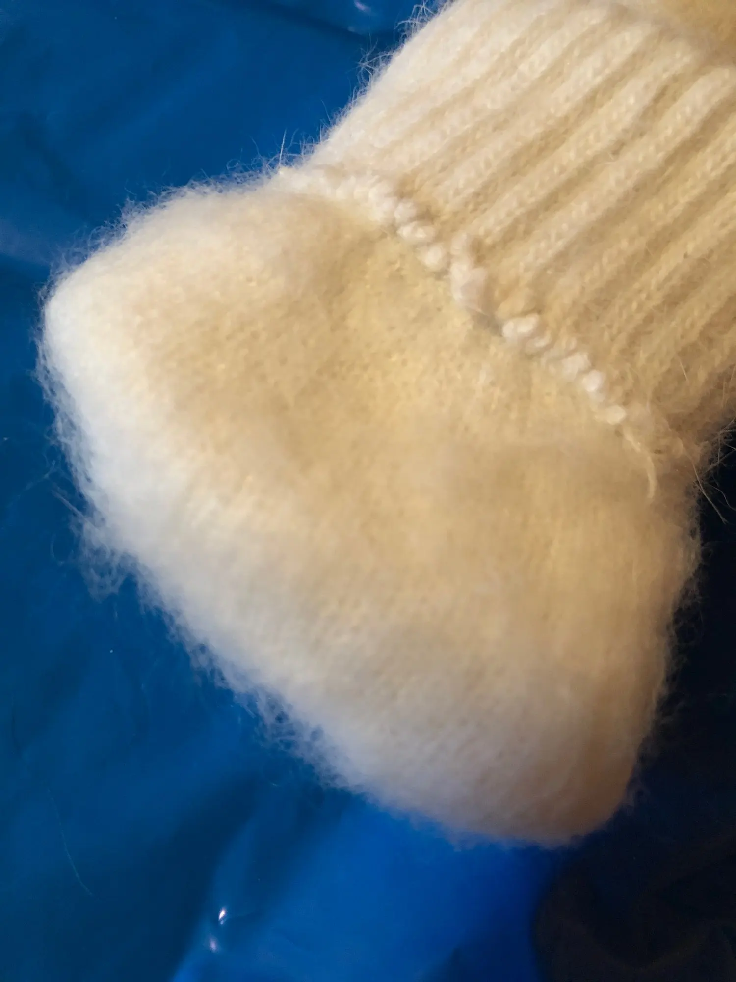 немного торчащих ниток и они очень линяют, но цвет белый и они теплые