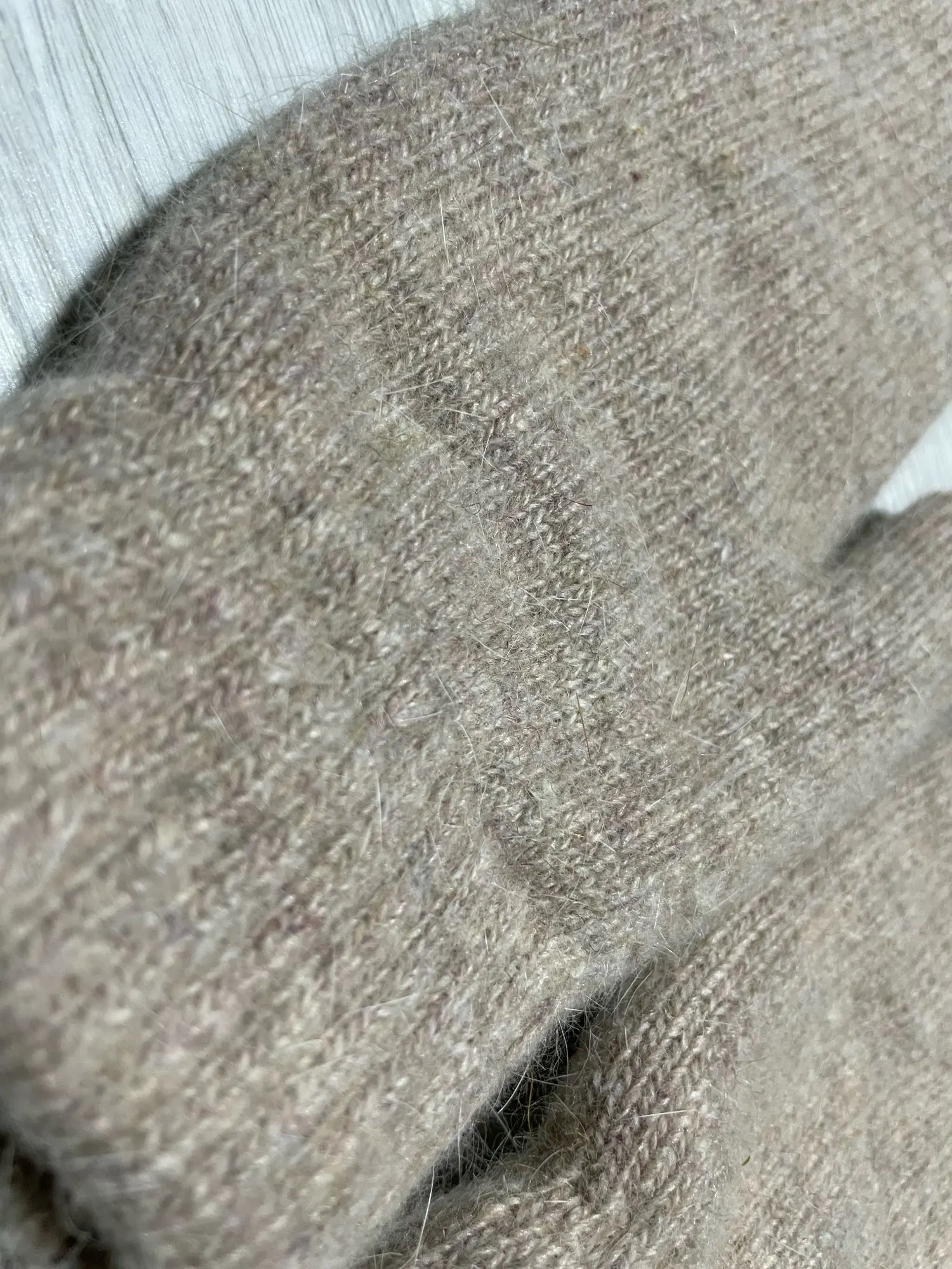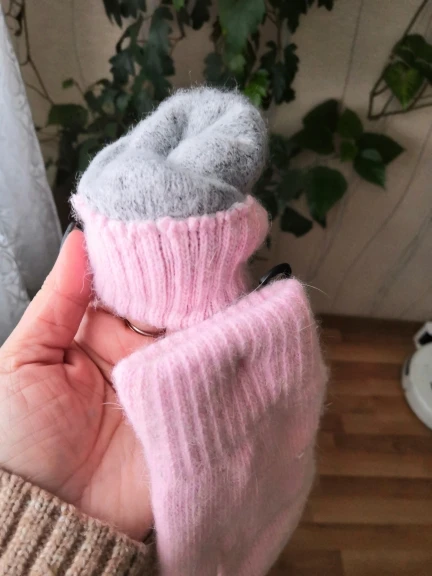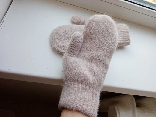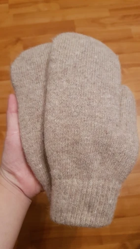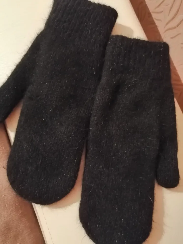 Варежки тёплые. Немного торчащих ниток (не страшно). Пока не стирала, до стирки сыпется пух, и очень много, надеюсь, после стирки все наладится. Продавца советую, выслал почти сразу же, товар пришёл быстро.
