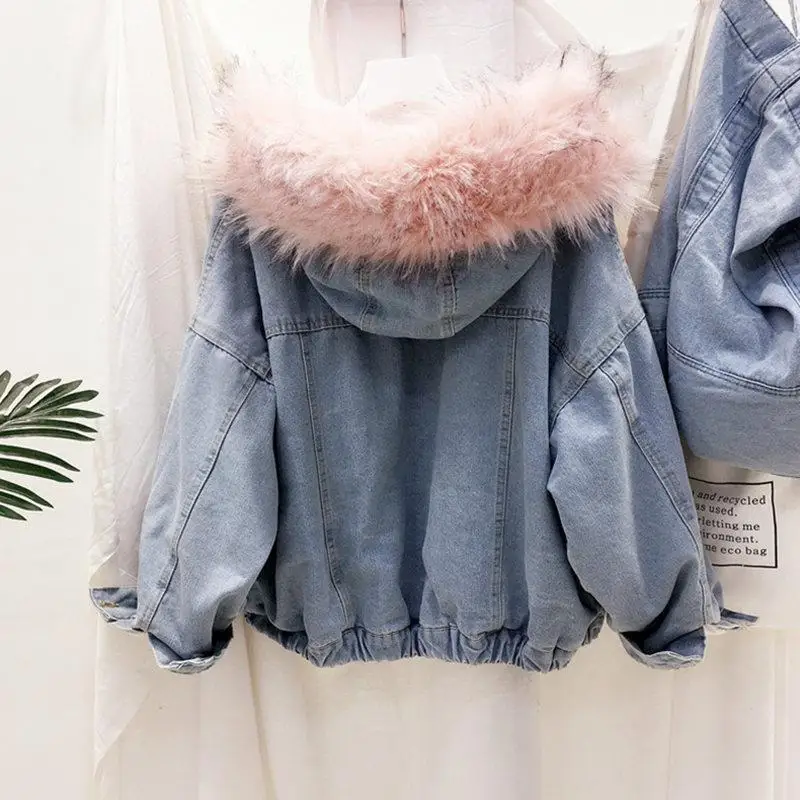 Luzuzi 2022 большая джинсовая куртка с воротником из искусственного...
