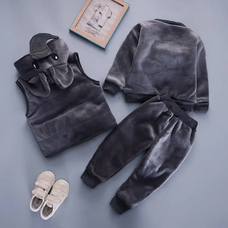 Новинка Осень-зима детская утепленная одежда с мультяшным рисунком жилет с капюшоном для мальчиков и девочек 3 шт.компл. Детский Костюм Повседневный Спортивный костюм для малышей