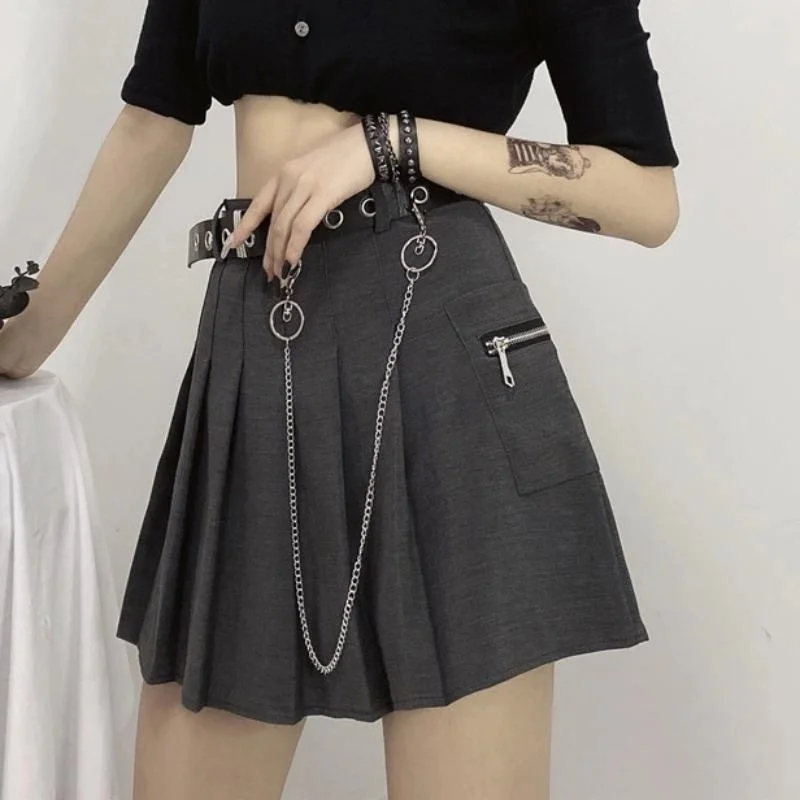 Юбка YBYR женская готическая в стиле панк, повседневная плиссированная мини-юбка на молнии с завышенной талией, с цепочкой, на лето, y2k