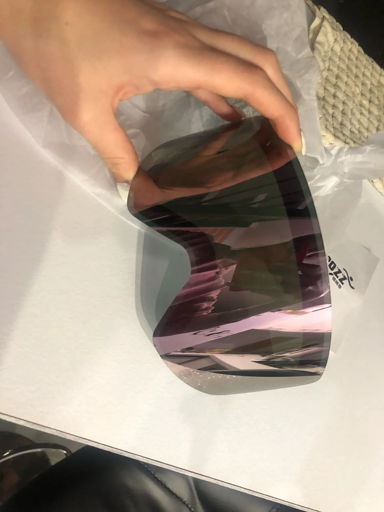 Очки очень красивые, добротные! Не потеют (если надеть и кататься, а не постоянно снимать на морозе и надевать, что логично), очень легко царапаются, уронила в первый же день, сама виновата. Линза классная, плотно прилегают, резинка с силиконом. За 9 дней пришли в Пятёрочку
