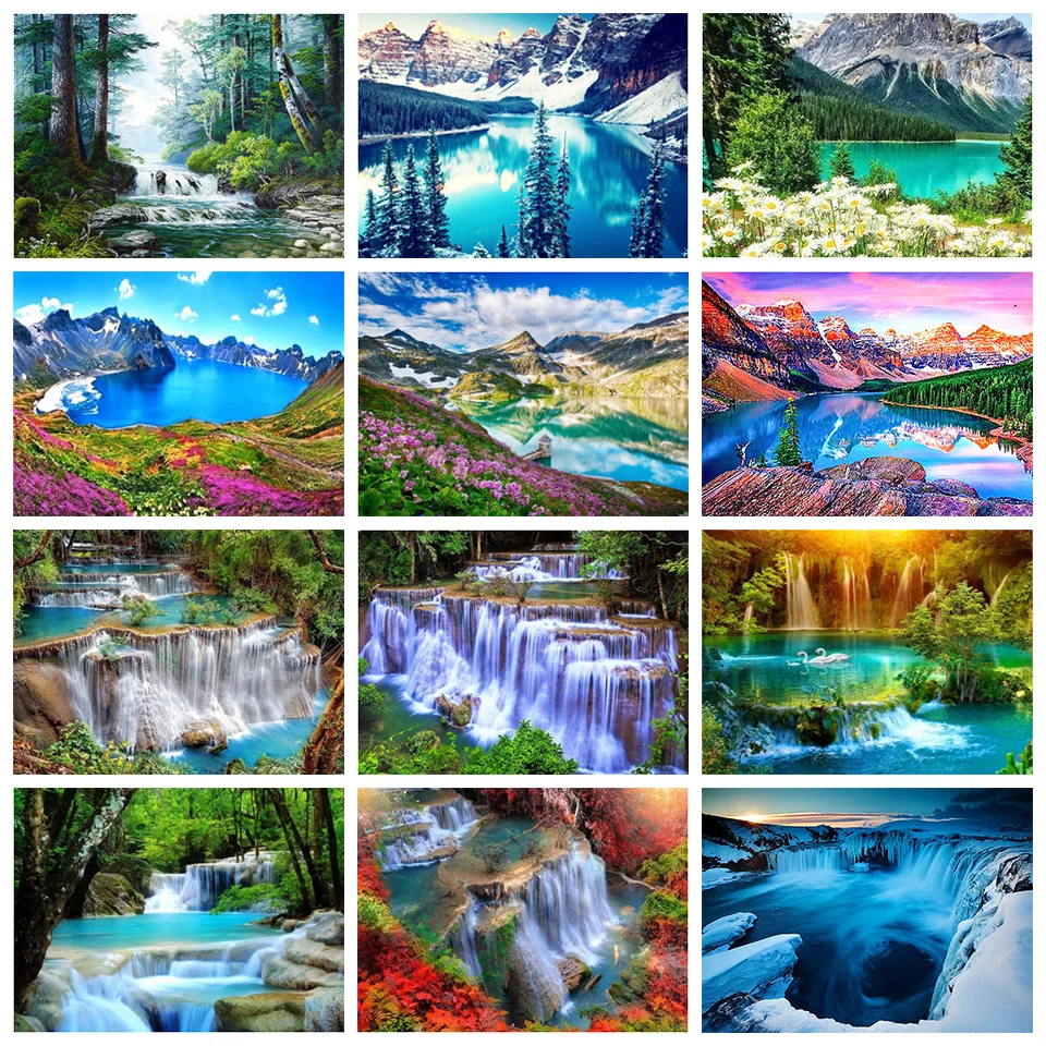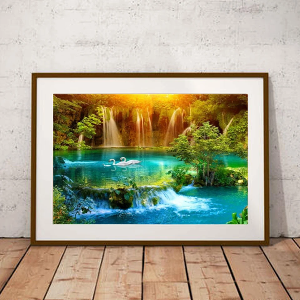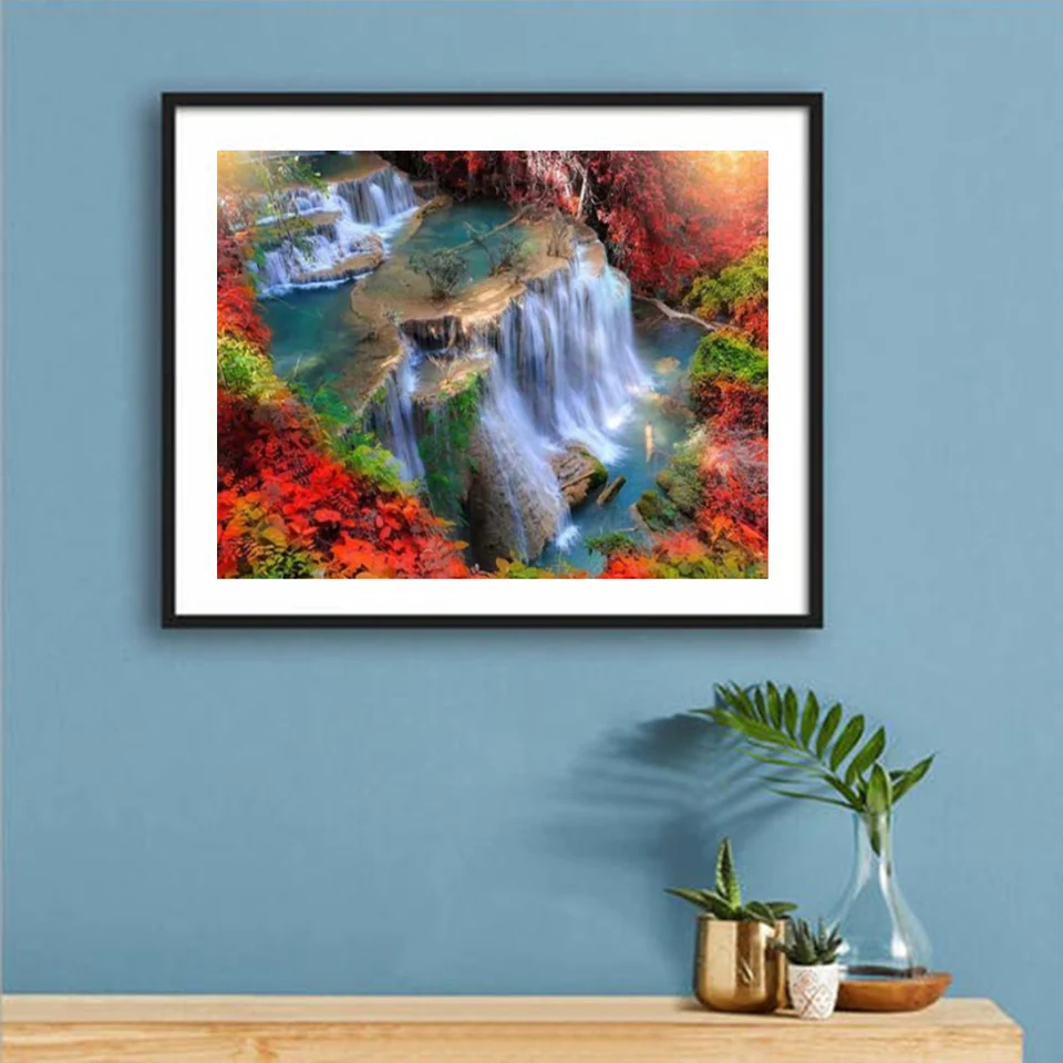 DIY картина, вышитая бисером комплект полный со стразами и квадратной круглый пейзаж водопада Стразы Вышивка 5D украшения мозаикой