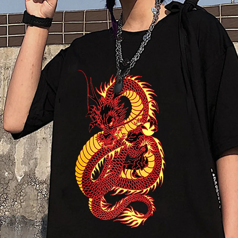 Футболка женская с коротким рукавом, свободная винтажная рубашка в стиле хип-хоп, с принтом китайского дракона, уличная одежда в стиле Харадзюку, большие размеры, лето