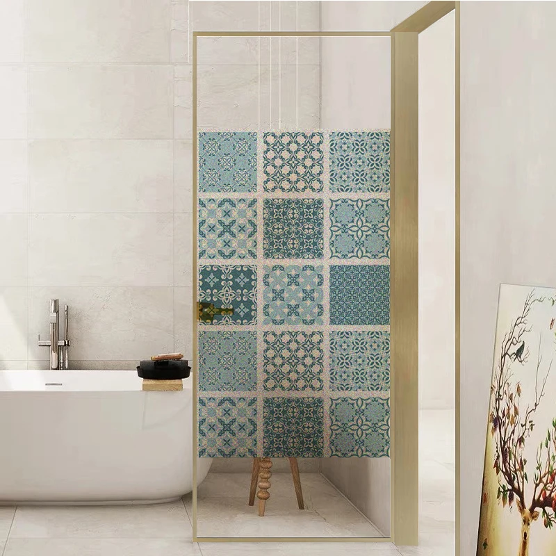Непроклеящаяся матовая оконная пленка, водонепроницаемая статическая пленка для стекла, фольга, наклейка на окно, средиземноморский синий цвет, для ванной GS031