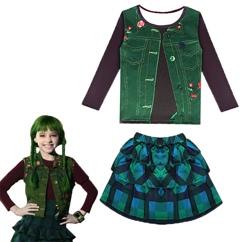 Новинка, костюмы для девочек для косплея зомби Эддисона, Хэллоуин, Детские Топы + юбка, комплекты одежды, Необычные наряды + цветочный шар + леггинсы