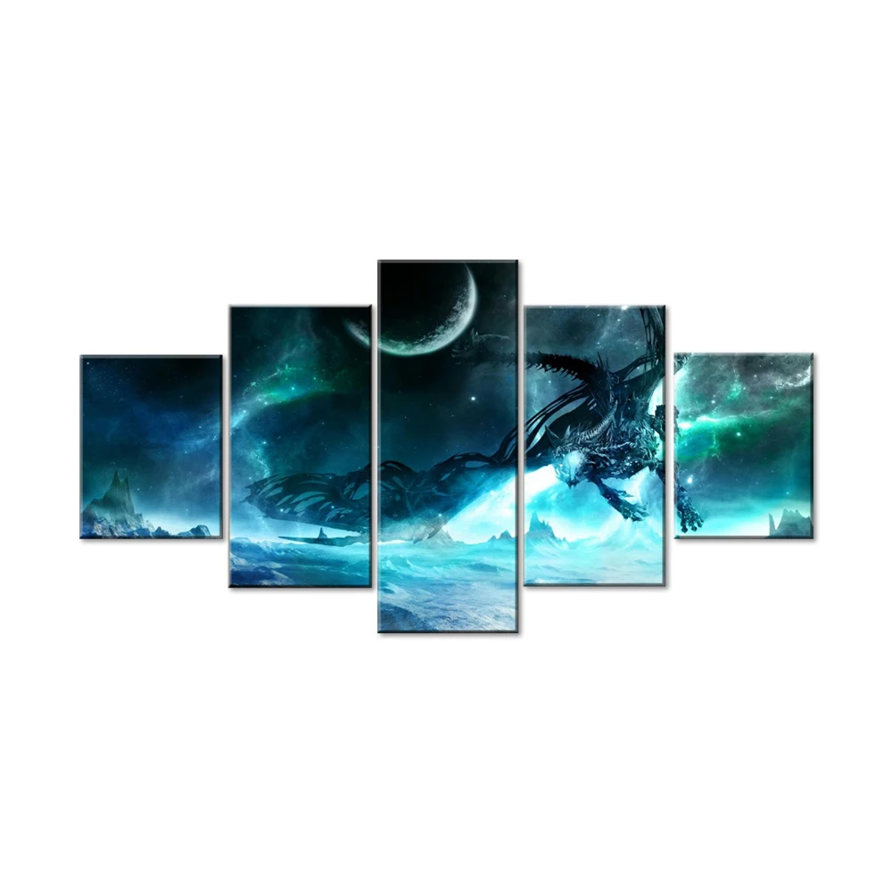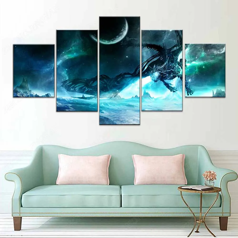 Печать на холсте картина Гостиная Wall Art 5 шт. Lich King Dragon фотографии модульные абстрактные картины игры плакат домашний декор защелка