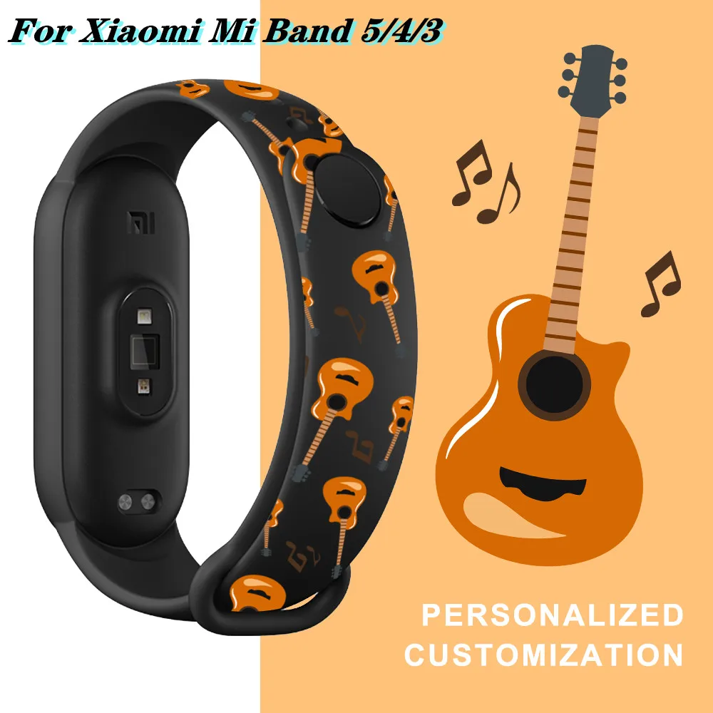 Мультяшный ремешок для Xiaomi Mi Band 5 4 3, силиконовый сменный Браслет с гитарным узором, ремешок для Xiaomi mi band 4 3 band5, ремешок из ТПУ