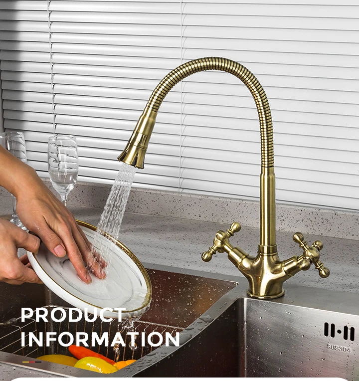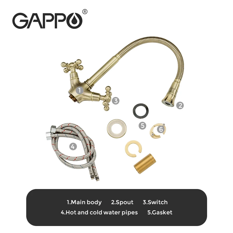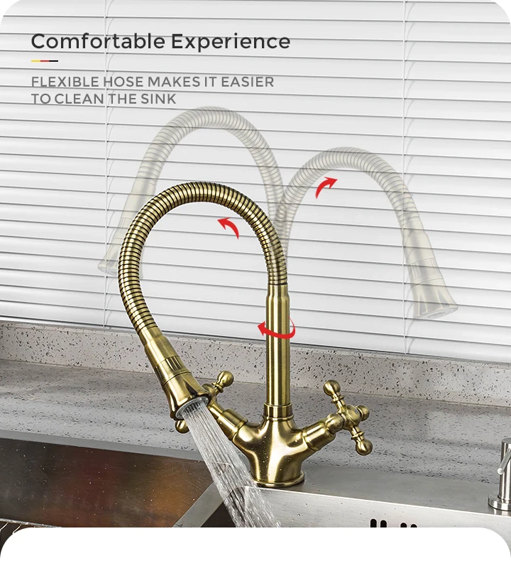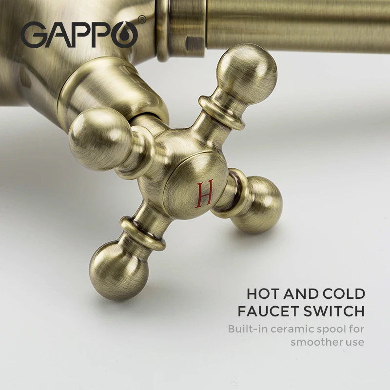 Золотые смесители для кухни Gappo, ретро смеситель для раковины, смеситель для воды с двойной ручкой, кухонный смеситель горячей и холодной воды, кран для кухни