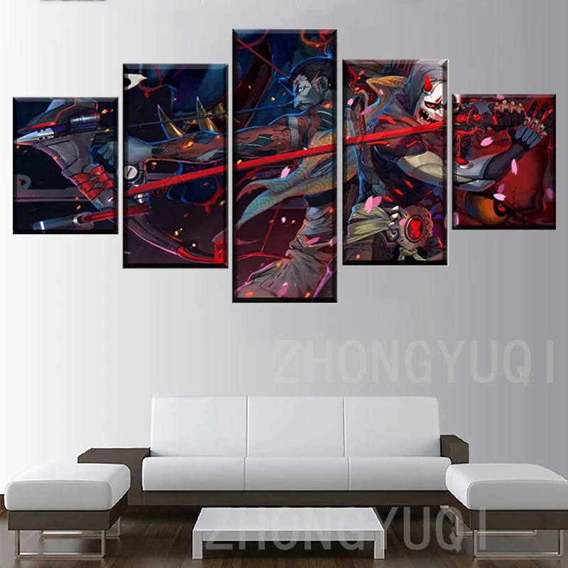 Картина на холсте, 5 панелей, Genji And Hanzo Overwatch, домашний декор, игровой постер, Картина на холсте для гостиной, Куадрос