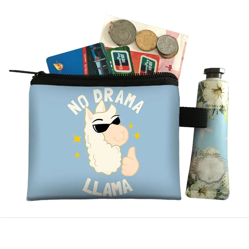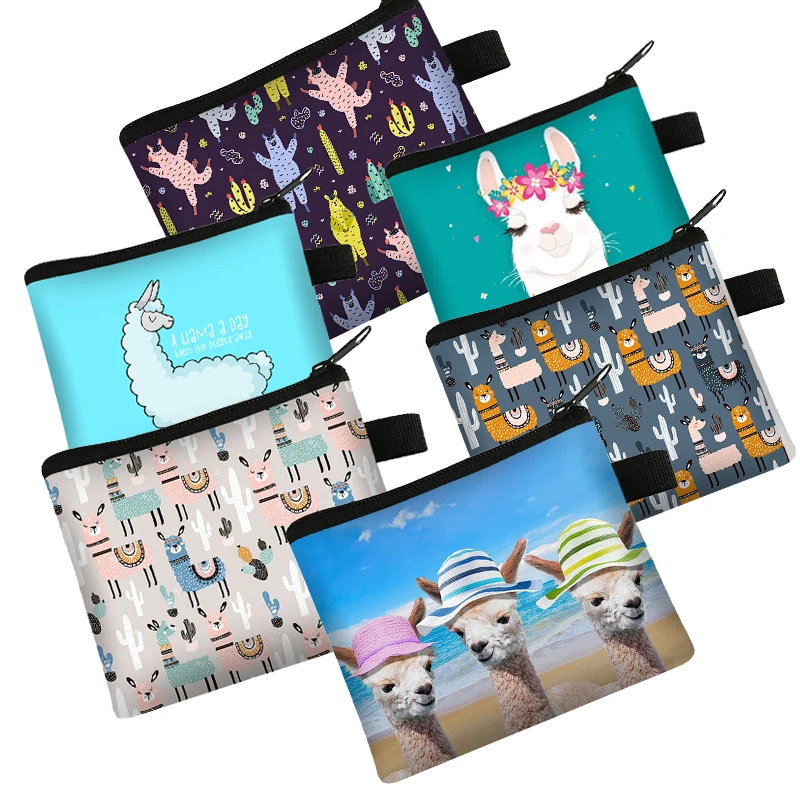 Женский кошелек для монет с мультипликационным принтом альпака, водонепроницаемый маленький кошелек на молнии, кошелек для карт и ключей, квадратный мини-кошелек для подарка