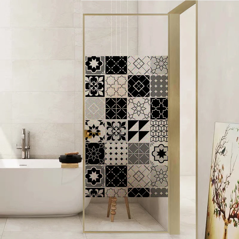 Черно-белая оконная пленка, матовая стеклянная дверь конфиденциальности для гостиной или ванной, домашний декор для гостиной GS030
