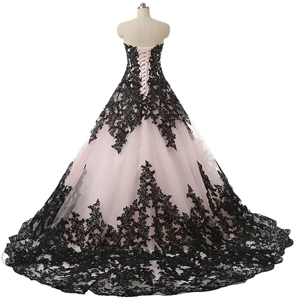 Женское длинное вечернее платье без бретелек, элегантное черное свадебное платье в готическом стиле на шнуровке с аппликацией, бальное платье для выпускного вечера