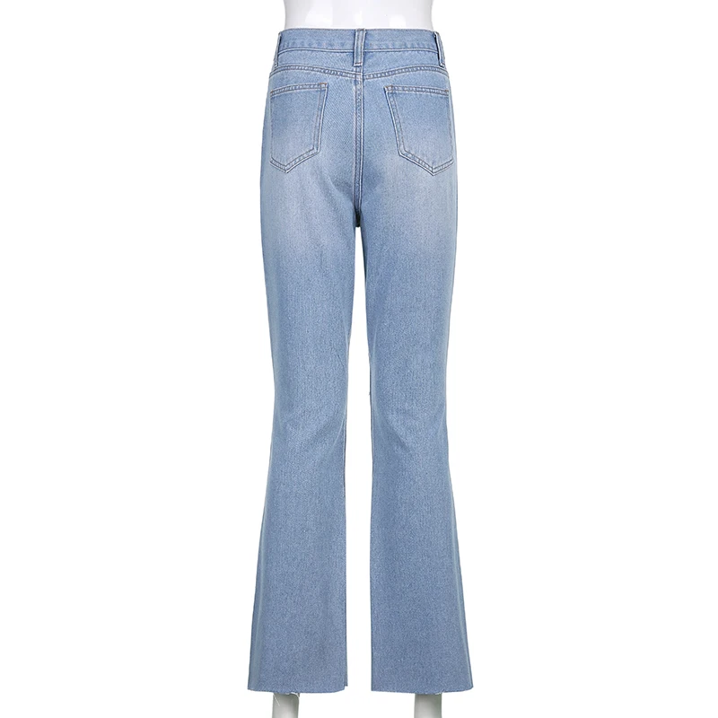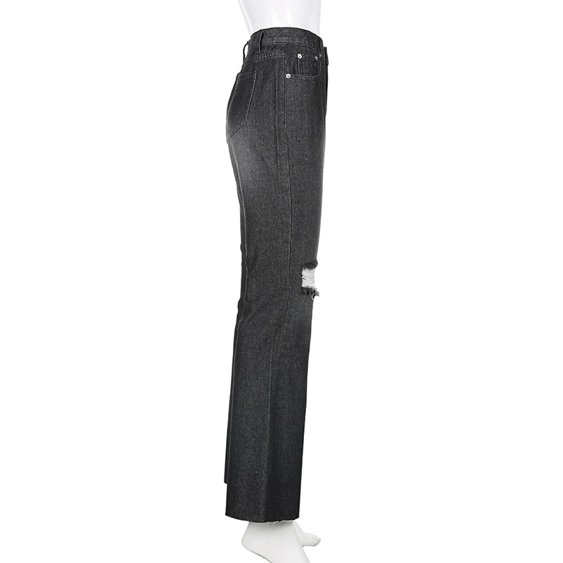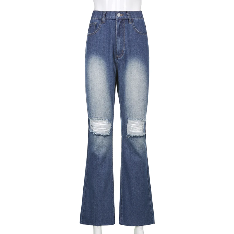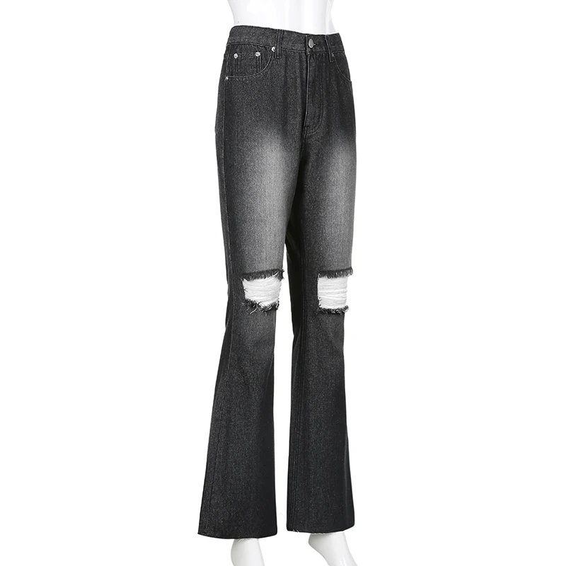 Джинсы женские рваные в стиле Харадзюку, Модные расклешенные брюки ...