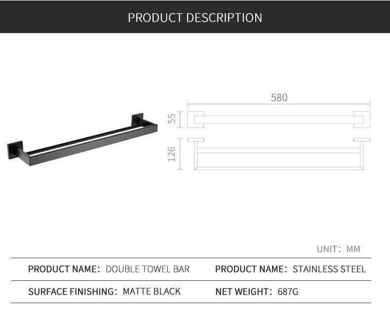 Весь металл: изготовлен из нержавеющей стали, обеспечивая качество и долговечность.Технические характеристикиМатериал: нержавеющая сталь 304Отделка: матовый черныйСпособ установки: настенный