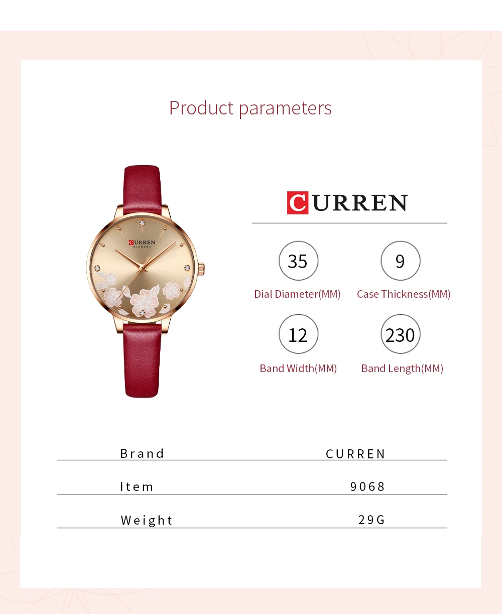 CURREN Роскошные Брендовые женские часы с цветочным циферблатом ква...