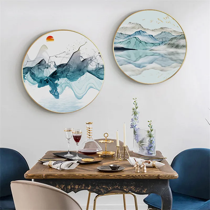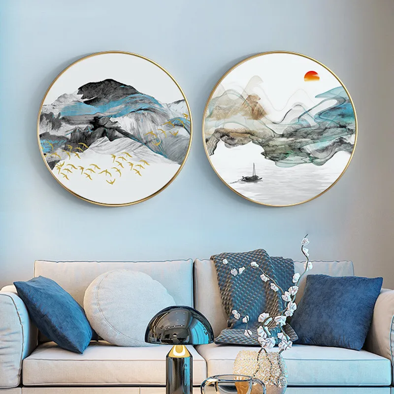 Китайский стиль пейзаж горы реки птицы современный скандинавский ст...