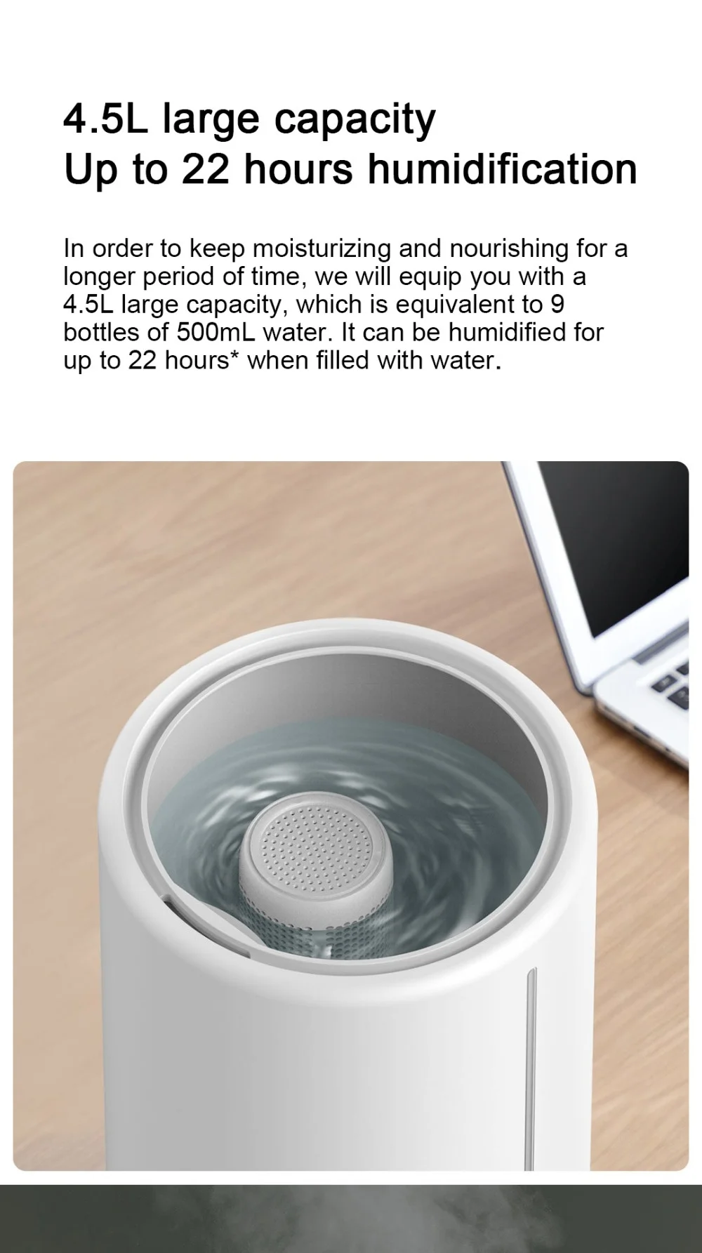 Эффективные, здоровые, умные, 3 новых обновления, новые изменения в увлажненииНаправленные на проблемы увлажнения, такие как медленное увлажнение, загрязнение воды и увлажнение дома, производительность продукта была систематически модернизирована, и новые конфигурации, такие как высокоэффективные распылители, мягкие фильтры для воды, И защита от избыточной влажности была введена для улучшения увлажнения и позволит вам наслаждаться увлажнением.