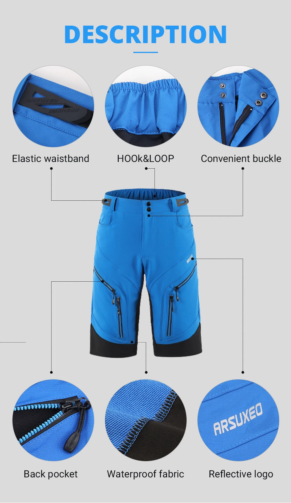 Особенности:Изготовлен из92% полиэстер и 8% спандекс, Быстро сохнет и дышит.Эластичный пояс, сделает вас комфортным при езде на велосипеде.Карман на молнии спереди и с обеих сторон для безопасного хранения.Светоотражающий фирменный логотип обеспечивает безопасность в темноте.Эластичный материал Lycra (черная часть в поясе сзади и ластовице) дышащий и эластичный, улучшающий ваши показатели во время занятий велоспортом.