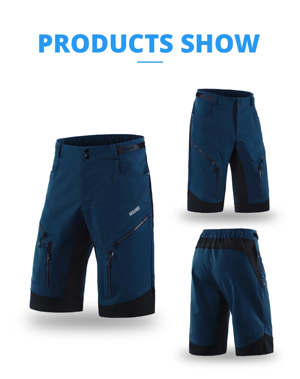 Мужские спортивные велосипедные шорты ARSUXEO, свободные штаны для горного велосипеда, горного шорты с карманами на молнии