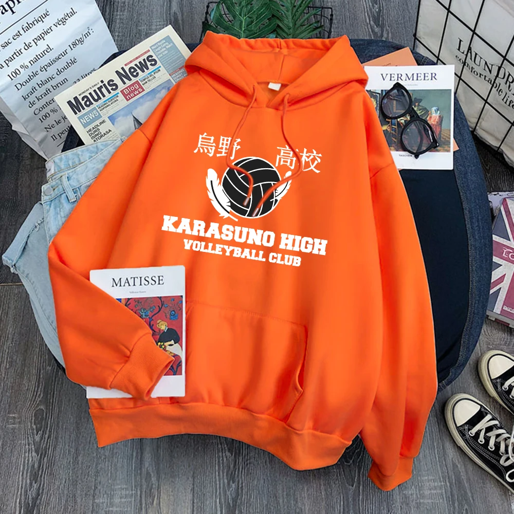 Школьной волейбольной команды (Karasuno High School письмо печать для женщин с капюшоном 2021 ВЕСНА Новинка худи в стиле хип-хоп повседневные толстовки Тканевая обувь в стиле Харадзюку; В винтажном стиле; На шнуровке; С капюшоном