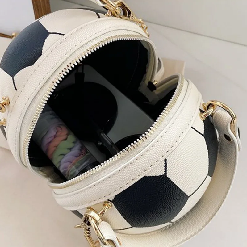 Модные баскетбольные круглые сумки через плечо для женщин, повседневные маленькие тоуты с акриловой цепочкой, мессенджеры через плечо из искусственной кожи