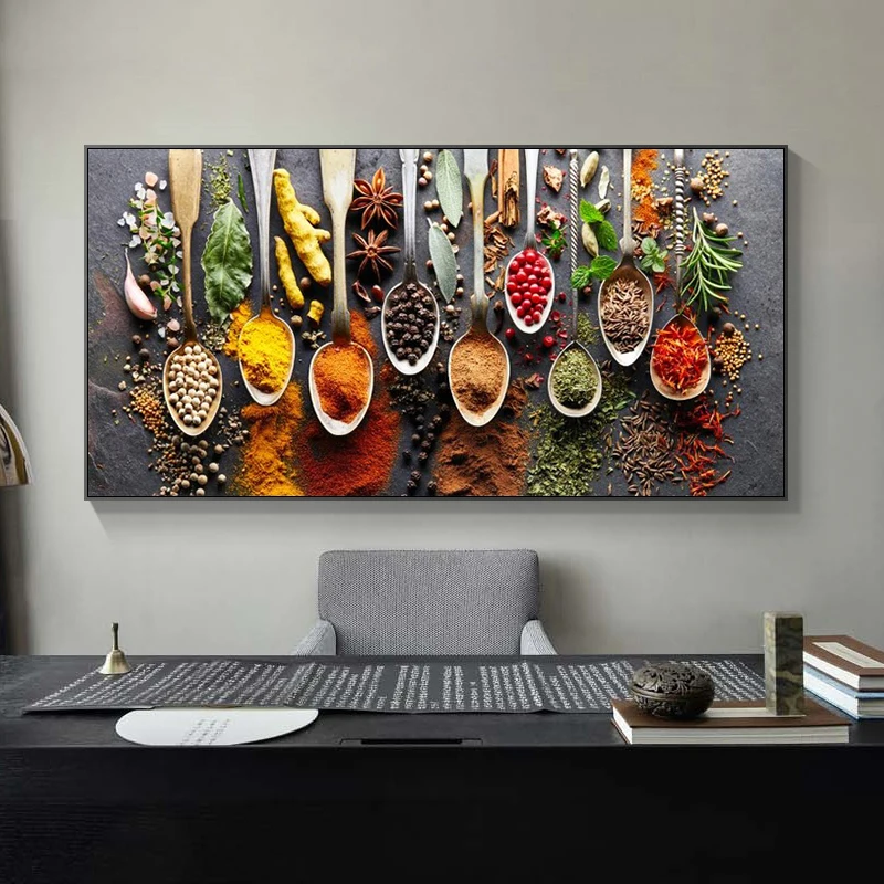 Настенные плакаты с изображением кухонных зерен на ложка для специй...