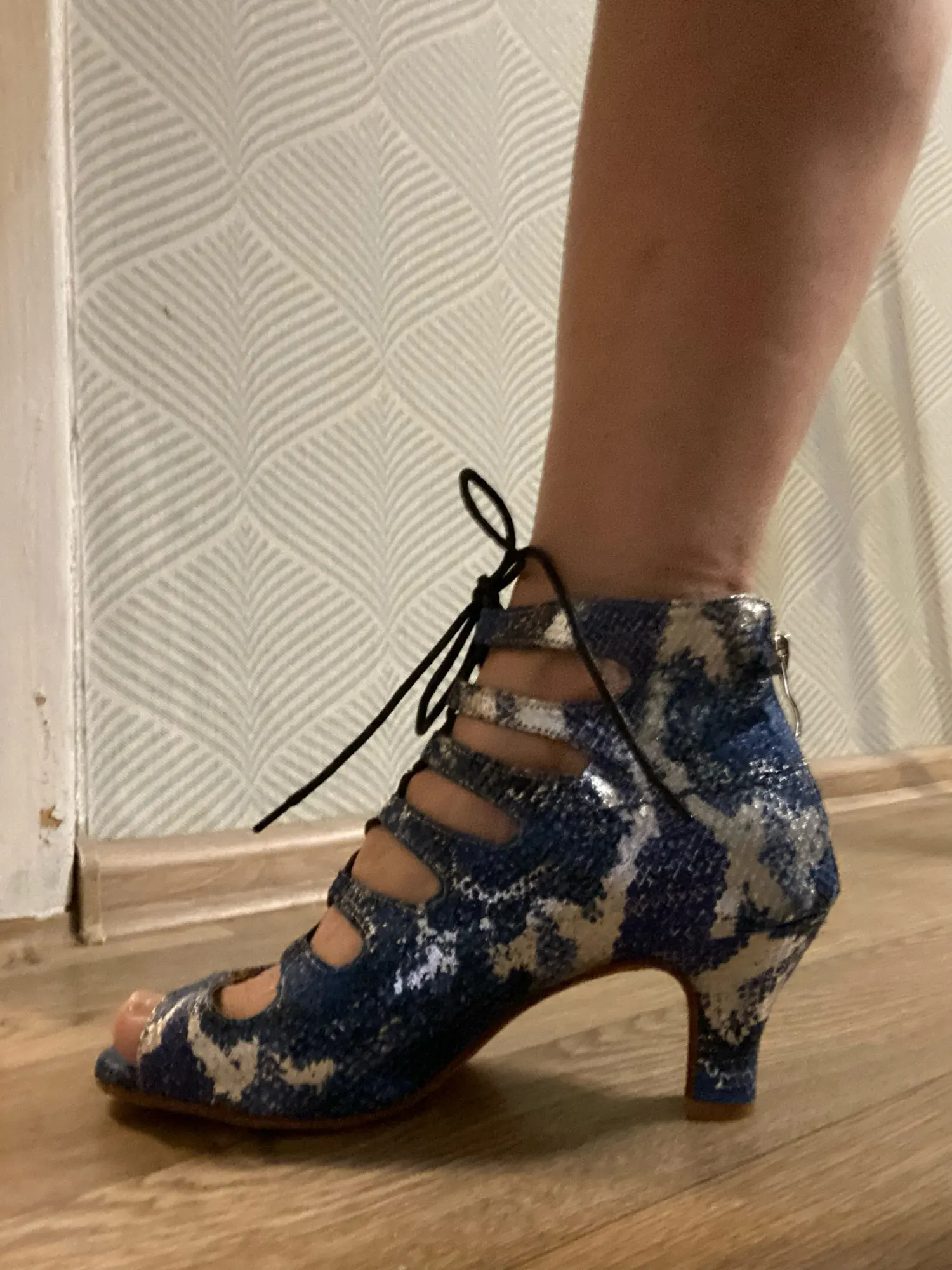 Туфли женские для латинских танцев, синие, с текстурой в африканско...