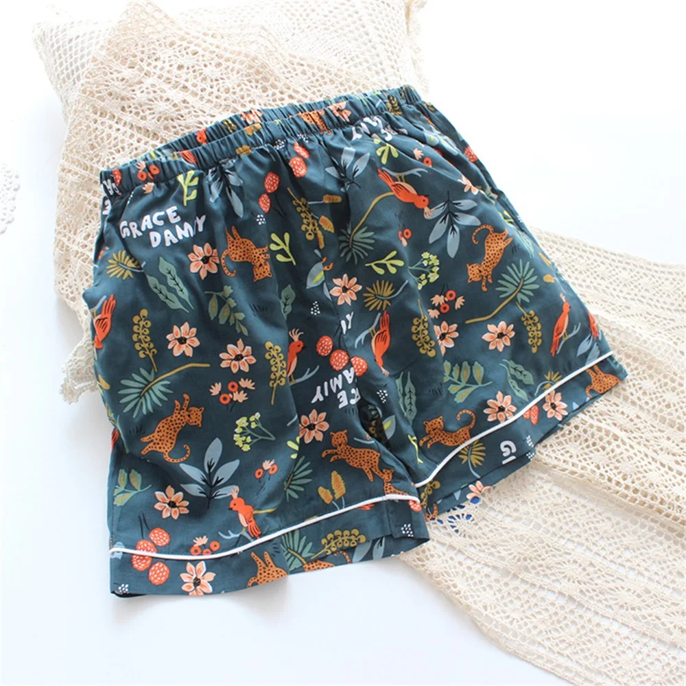 Новинка 100% хлопковая Марля женские пижамные шорты с мультяшным пр...
