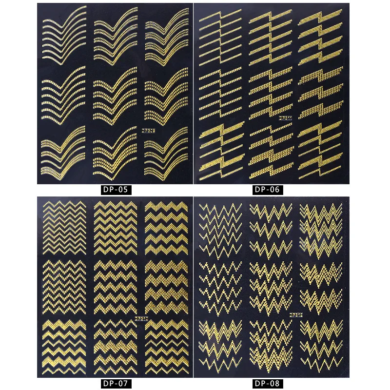 16 вариантов Стикеры для ногтей с зеркальным золотым ривертом, мета...