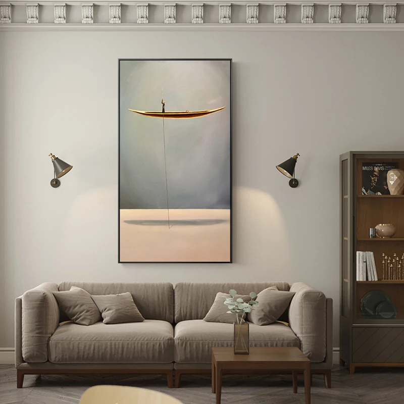 Фантазия одинокий истончик и золотой лодка плакаты и принты Холст Ж...
