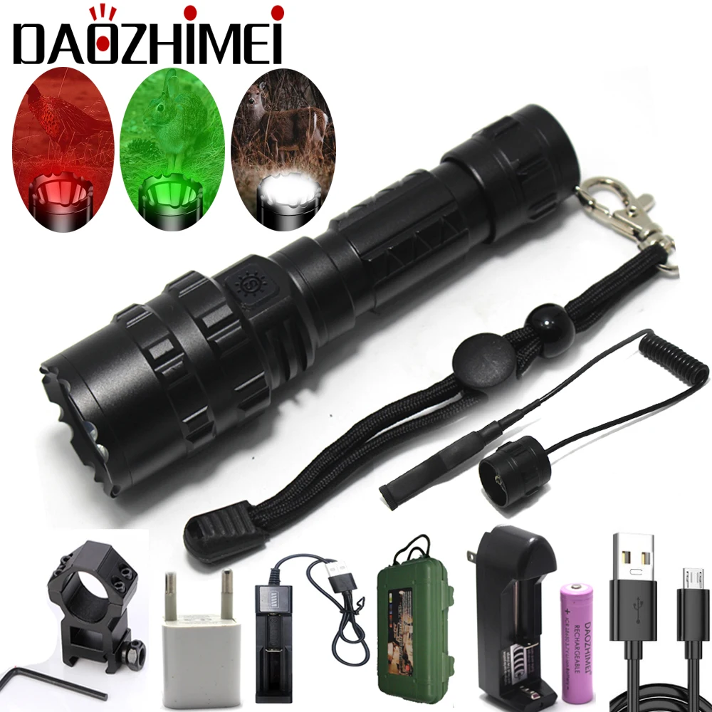 Тактический фонарь белый/зеленый/красный с переключателем давления, охотничий фонарь, винтовочный пистолет, 5 режимов, USB Rechargeabl фонарик