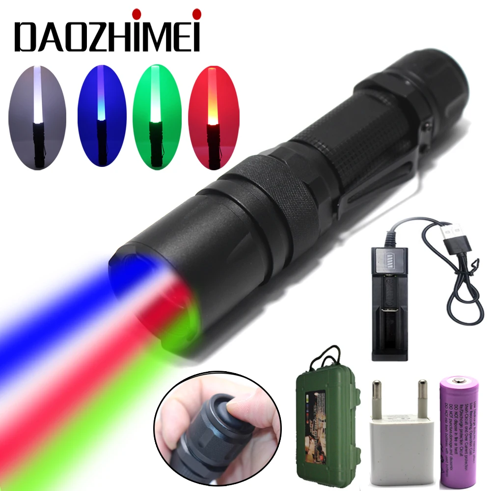 Специальные Особенности: высококачественный 4 цвета в 1 Светодиодный светильник для охоты с масштабируемой функцией Использование: Водонепроницаемый 1000 люмен (белый, зеленый, синий, красный) светильник для концерта, охотничий светильник для вспышки, идеально подходит для охоты на ночь, кемпинга, рыбалка, катание на лодках или просто для отключения электроэнергии в вашем доме