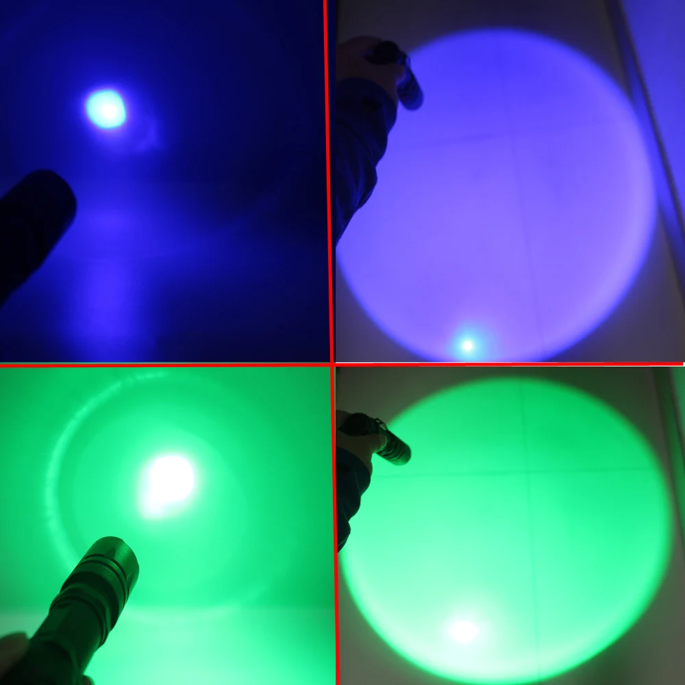 Светодиодный: белый светильник/зеленый светильник/синий светильник/красный светильник 4 в 1 светодиодный4 режима: белый светильник-зеленый светильник-синий светильник-красный светильникСрок службы лампы: 100000 часовЦвет Фонарика: черныйИзлучаемый Цвет: белый светильник/зеленый светильник/синий светильник/красный светильникПереключатель: одна кнопка ЗажиганияРазмеры: 150 мм x 32 мм x 26 ммВес: около 156 гРасстояние освещения: 100-200 мСветодиодный срок службы: более 100000 часовНапряжение: 3,7 вольтТип лампы светодиодныйМожет работать водонепроницаемо (может использоваться в дождливые дни), но не может нырять, не может быть замачивается в водеАккумулятор: для 1 аккумулятора 18650 или 3 аккумулятора AAA