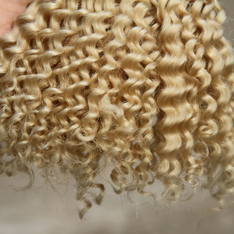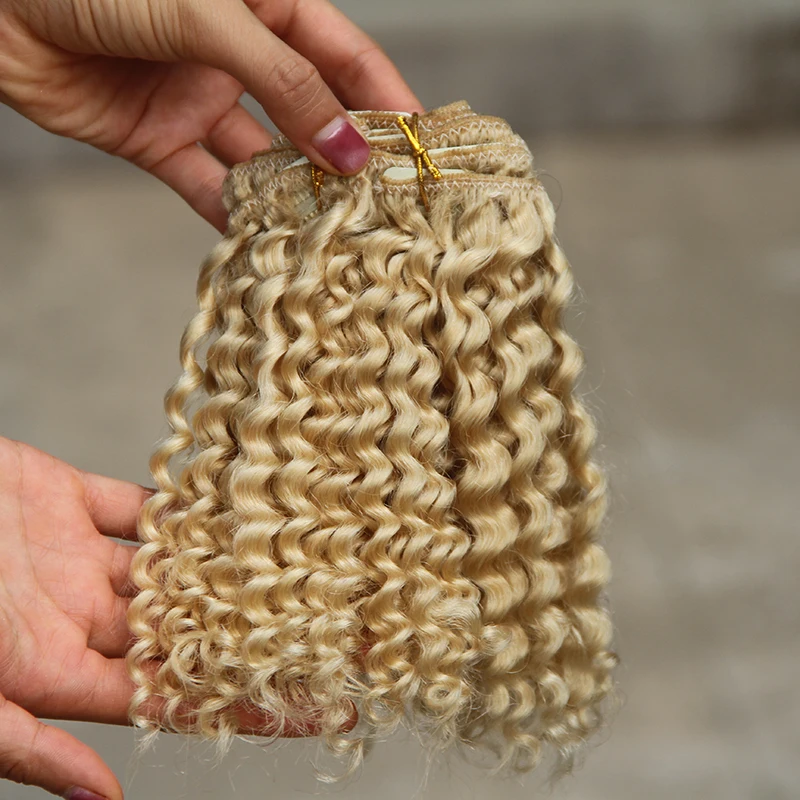 Малазийские кудрявые накладные человеческие волосы на заколке #613 блонд 9 шт.компл. пряди с клипсами Remy #4 #1 полный комплект голов 120 г
