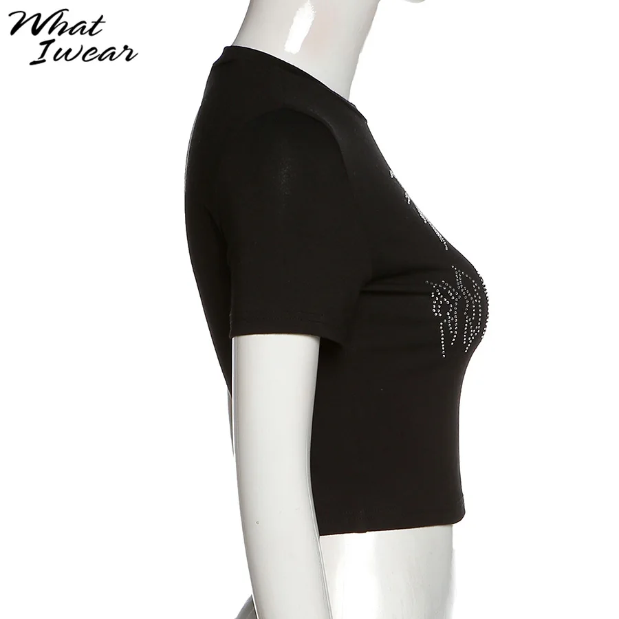 Женские летние винтажные футболки Стразы в стиле панк с графическим...