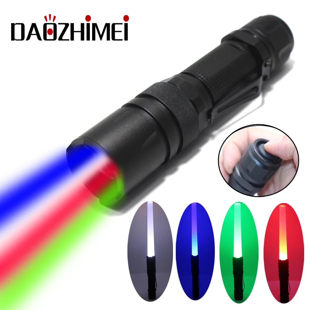 Масштабируемый светодиодный тактический фонарик, концертный, многофункциональный, 4 цвета в 1, светодиодный разноцветный фонарик, 18650, лампа для охоты, рыбалки