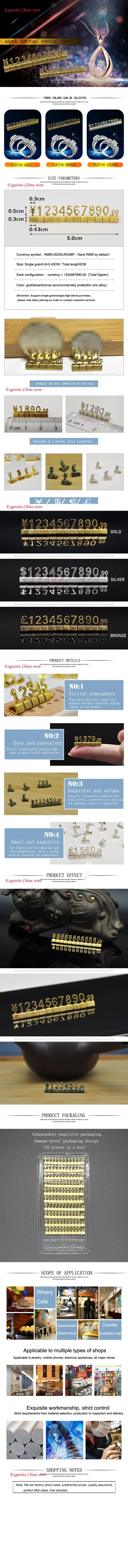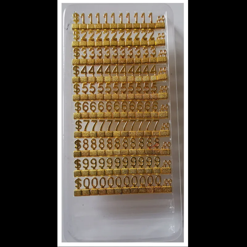 10 наборов ценник Регулируемая цена дисплей Цена Этикетка евро фунт Цена Цифры кубики ювелирные изделия часы очки ценник Материал: покрытие из сплава Спецификация: 5 × 3 мм Область применения: ювелирные изделия, часы, часы и роскошные товары Настройка процесса: Да Форма печати: Гальваническое покрытие Минимальный заказ: 5000 шт. Советы: мы поддерживаем ваш знак на заказ Электронная почта: xiaohong20201212@163.com,Wechat:+ 86-15986792467