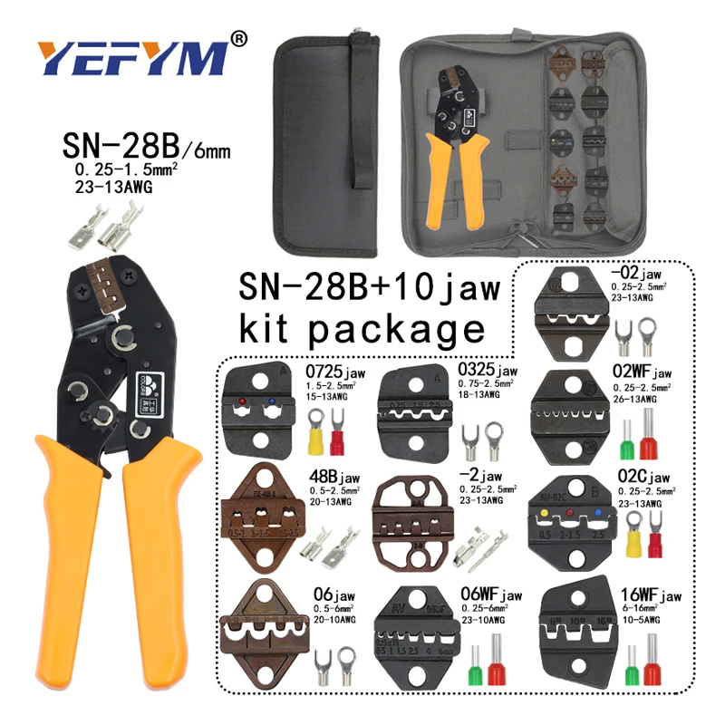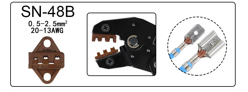 Обжимные клещи для TAB 2,8, 4,8, 6,3, C3, XH2.54, 3,96, 2510, трубчатые, неизоляционные клеммы, SN-48B, 10 зажимов, набор электрических зажимов