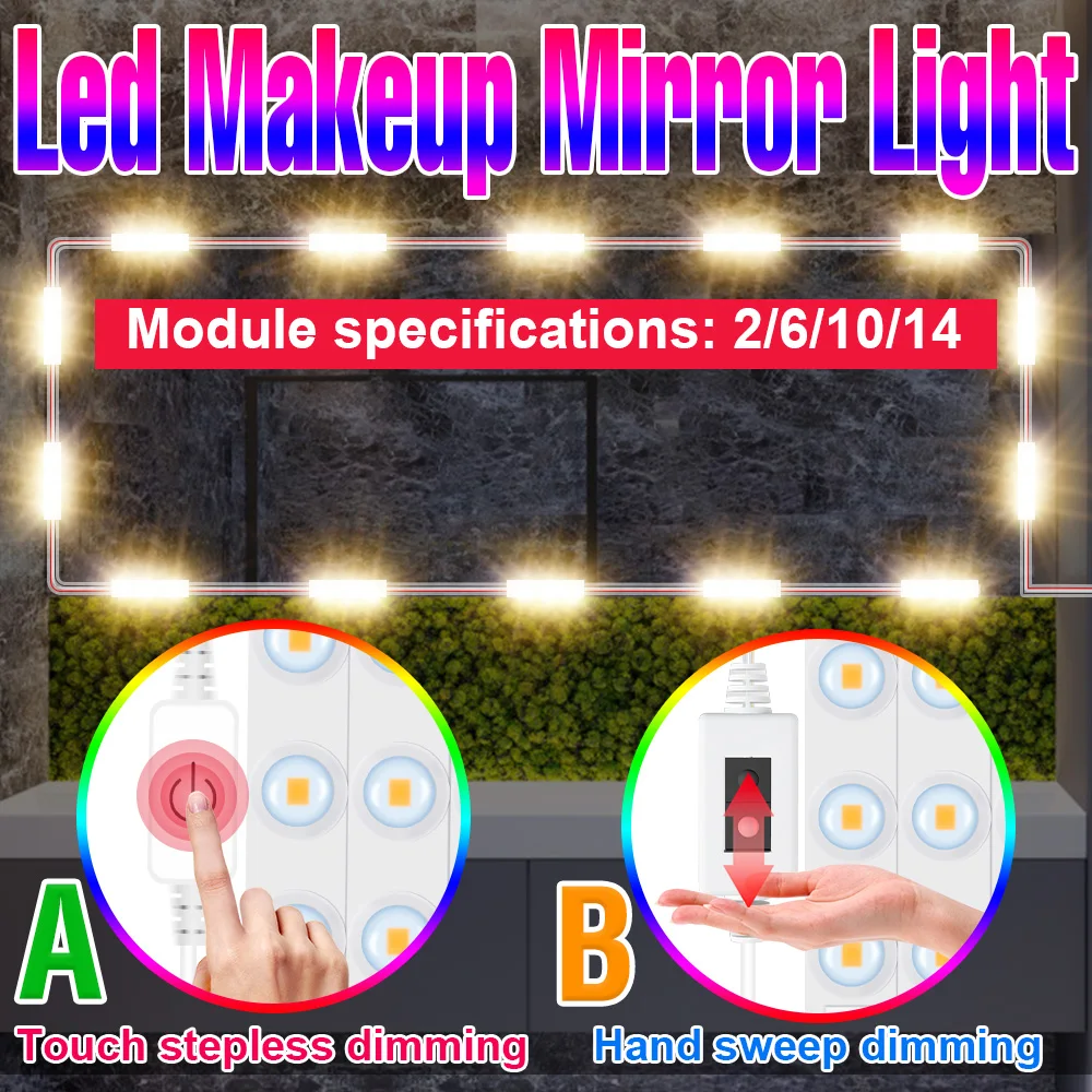 Светодиодный сенсорный/ручной датчик развертки лампы для макияжа зеркальный светильник