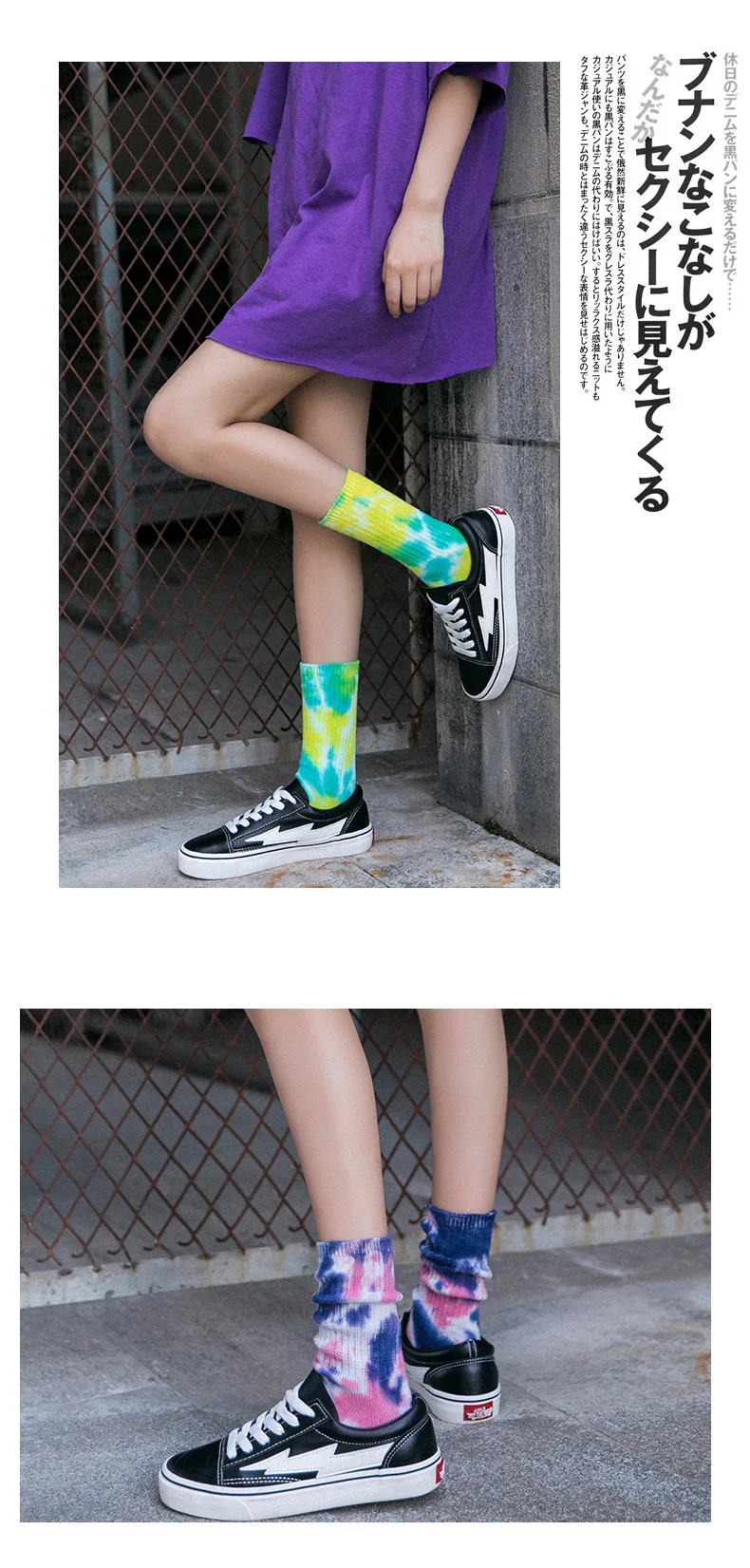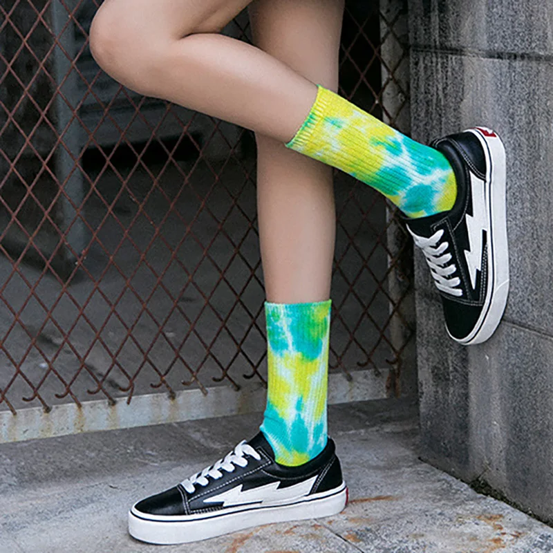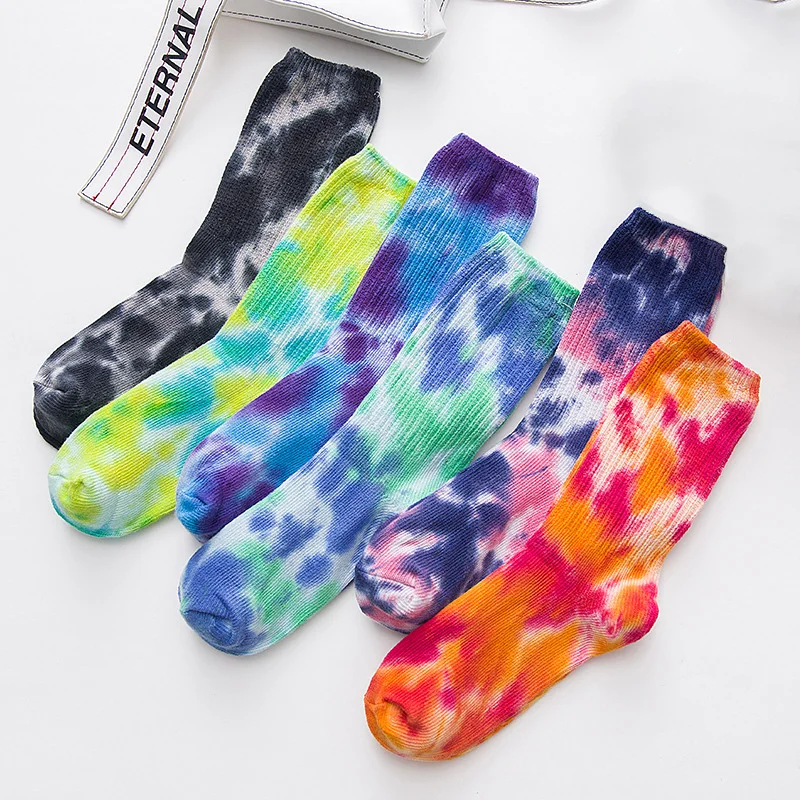 Носки мужскиеженские в стиле Харадзюку, хлопок, разноцветные, с принтом тай-дай