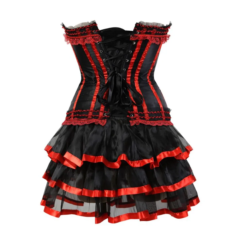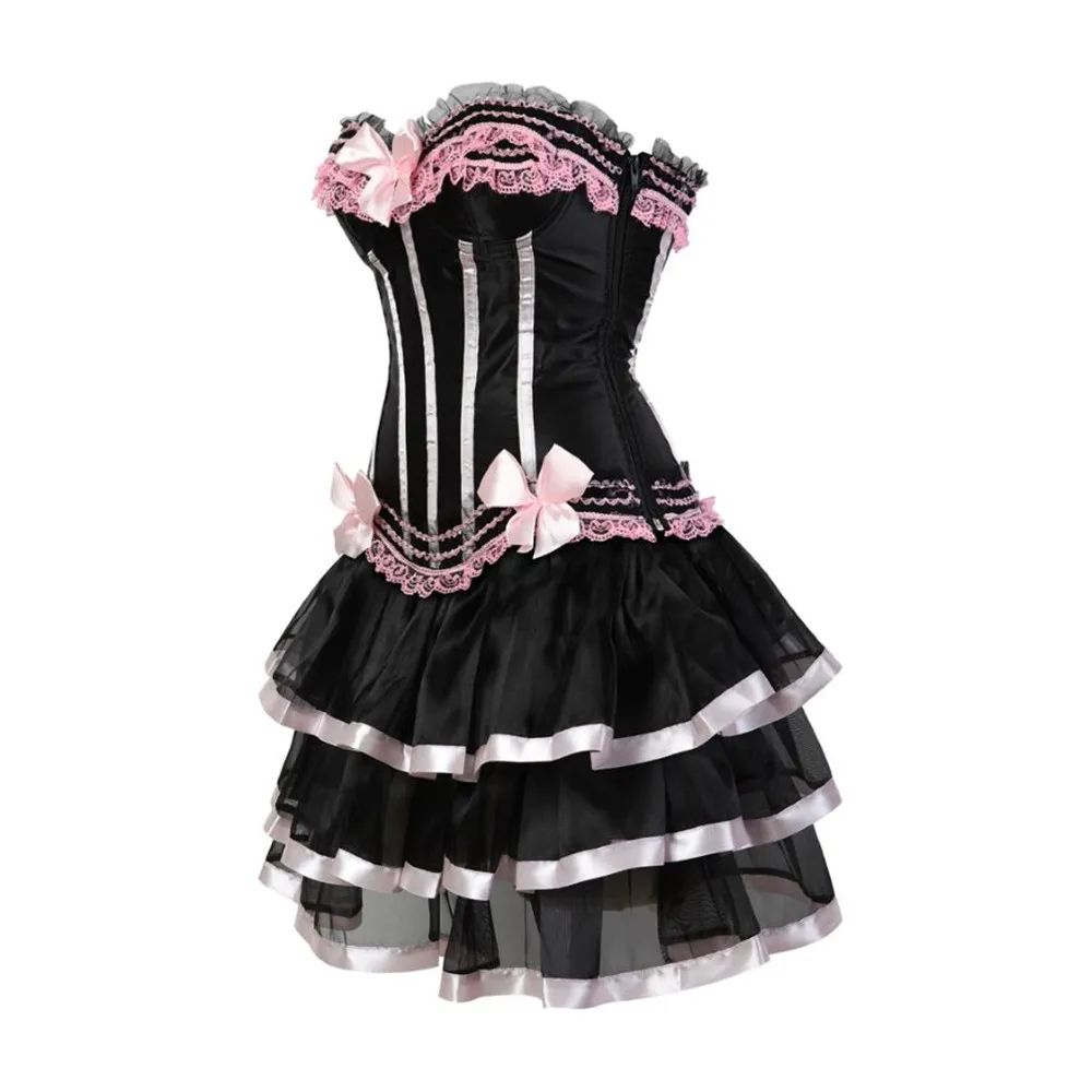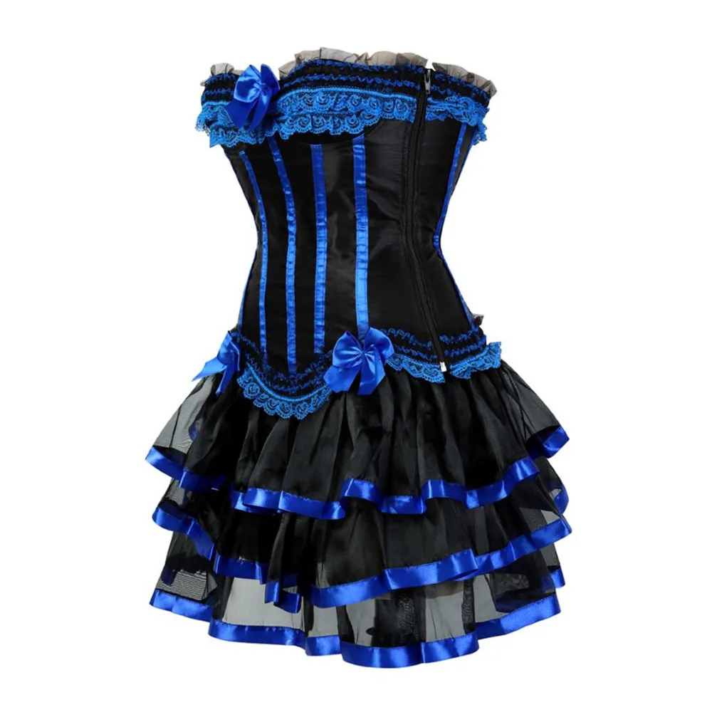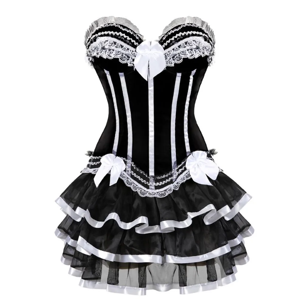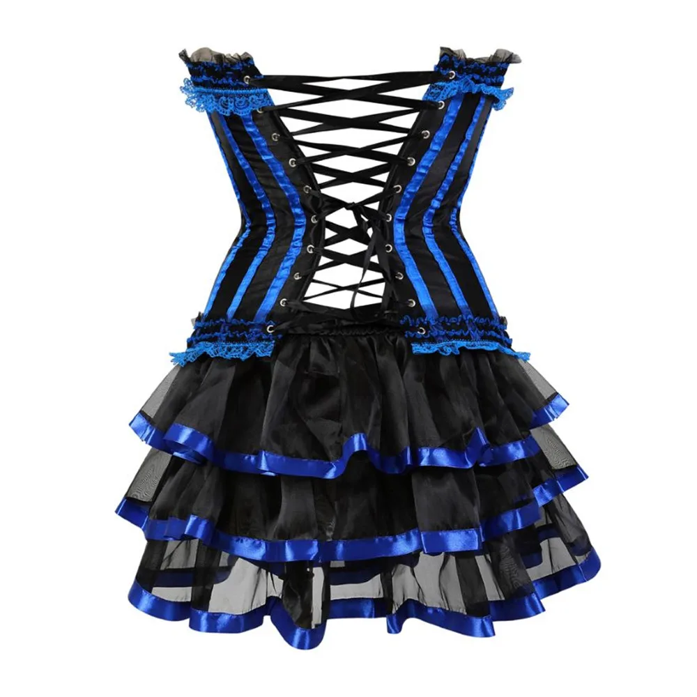 Дворец Модные Полосатые кружевные Сексуальная чашка корсет Overbust платье корсеты и бюстье, топ с юбками