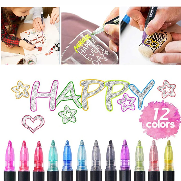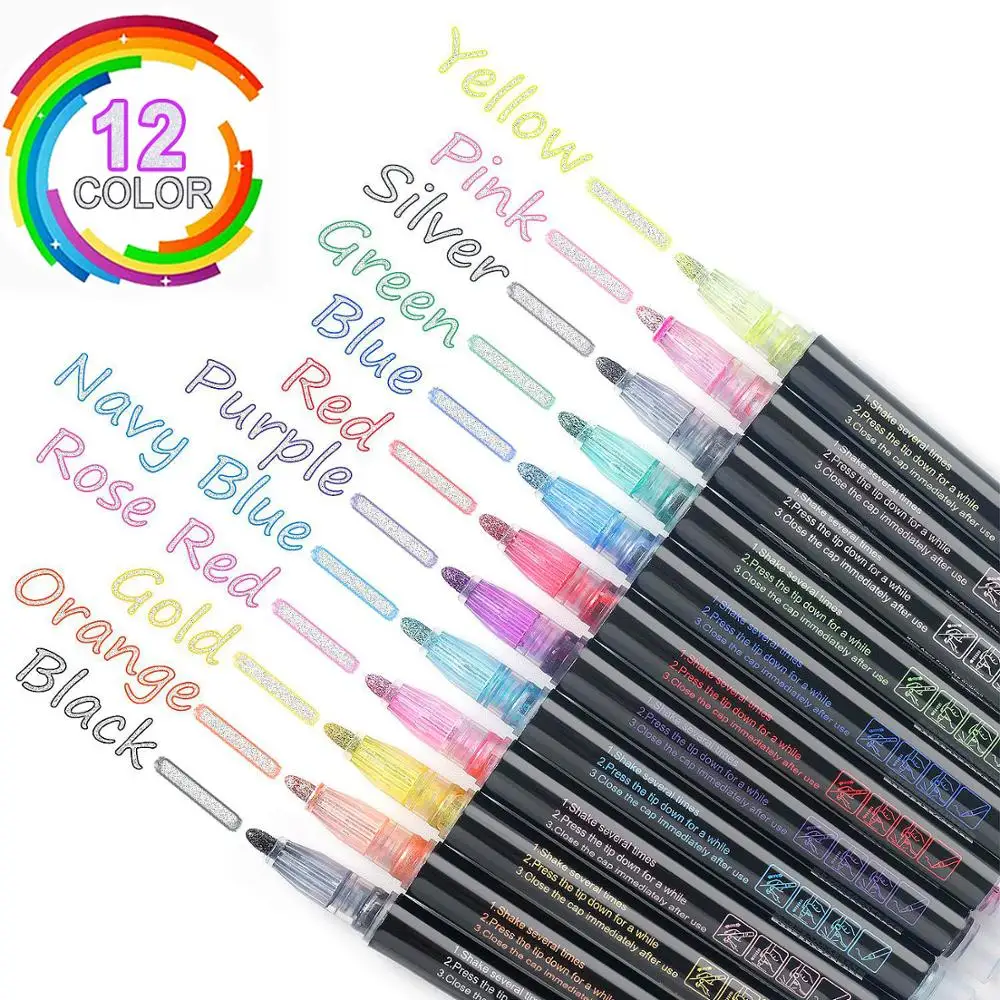 Набор ручек с двойными линиями, 12 цветов, волшебный маркер металли...