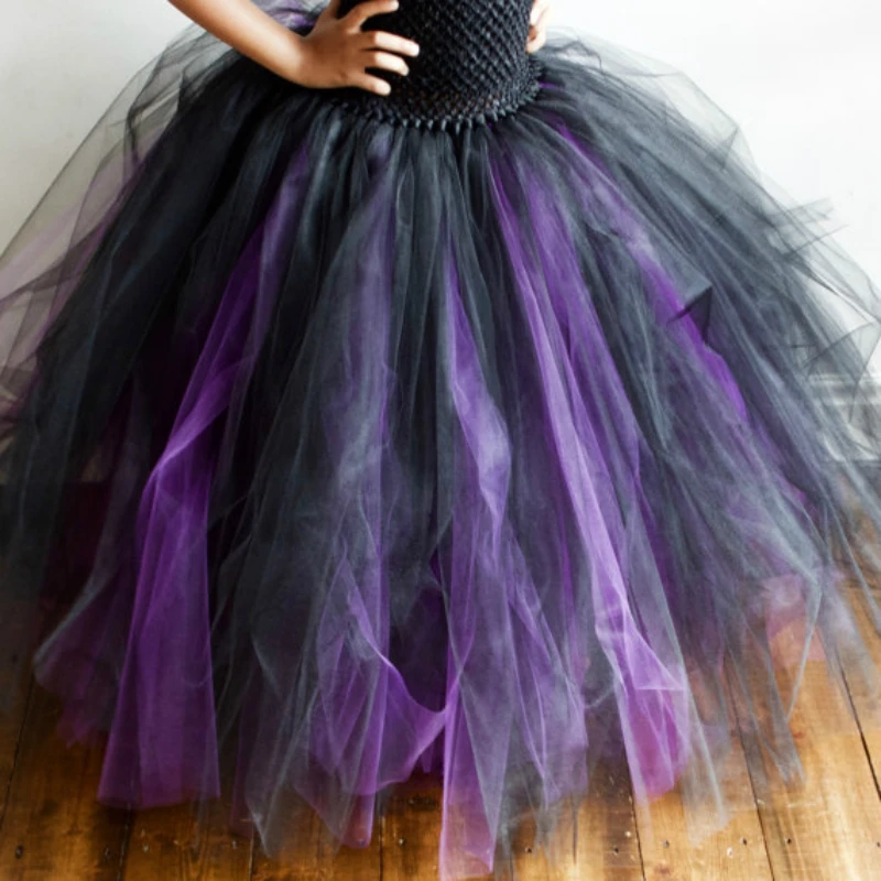 Платье-пачка для девочек, черное, фиолетовое, детское вязаное фатиновое платье, длинное бальное платье, Детский костюм на Хэллоуин, день рождения, вечеринку, вечерние мечты