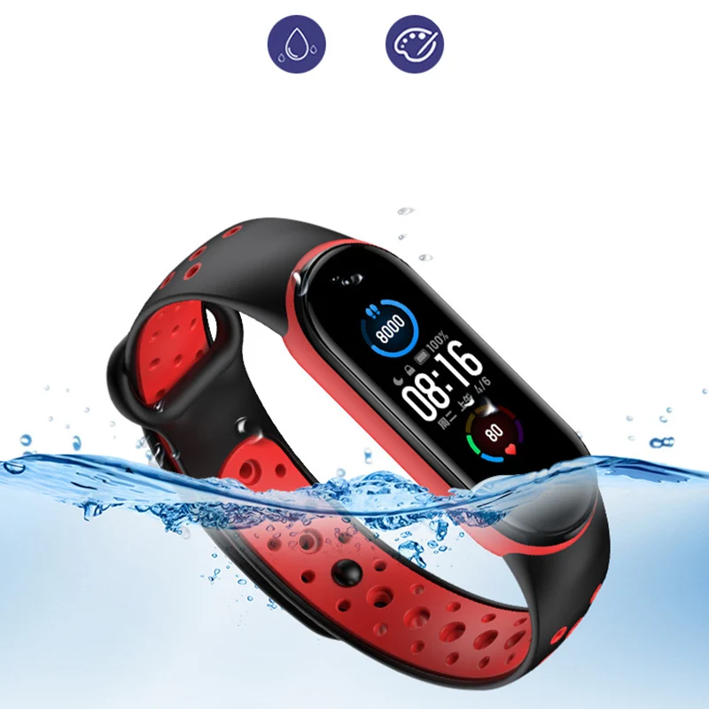 Ремешок силиконовый двухцветный для Mi Band 3 4 5 6, спортивный дышащий ремешок с пряжкой и защитой от пота, сменный Браслет