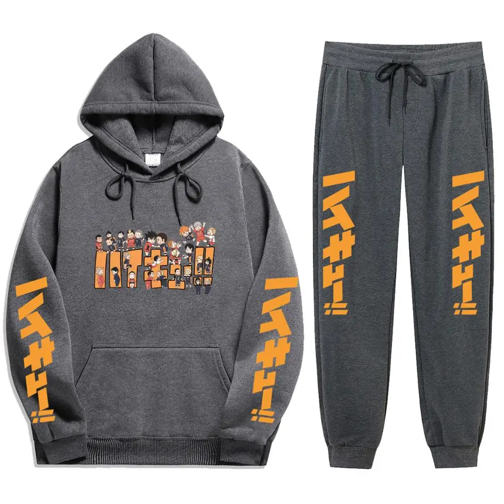 Аниме Haikyuu! Зимний спортивный костюм Nekoma, комплект из 2 предметов, толстовка с принтом и штаны, мужской спортивный костюм с толстовкой