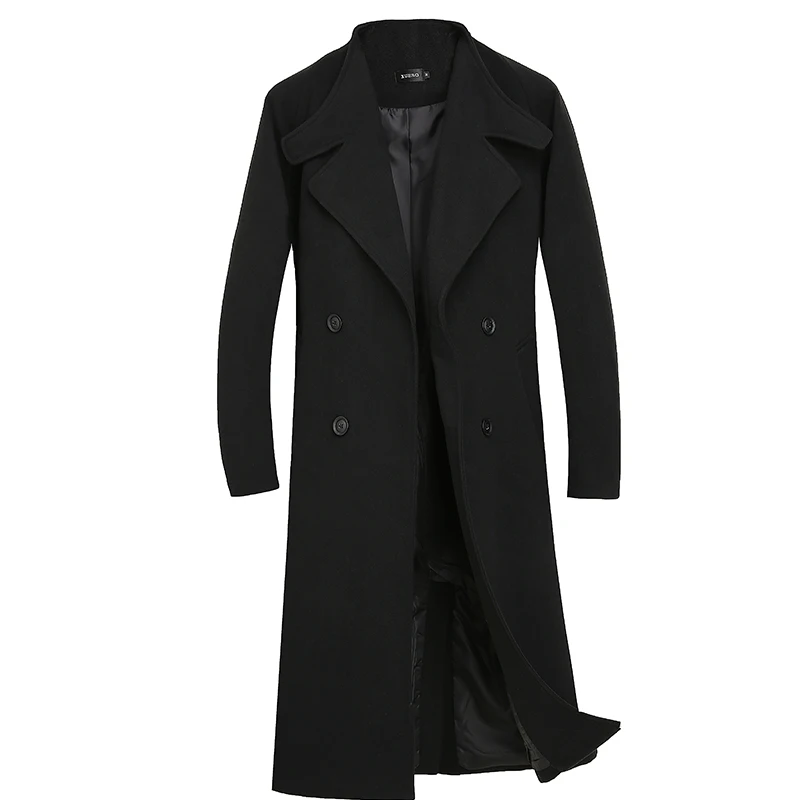 Мужское шерстяное пальто, черная осенне-зимняя модная однотонная Повседневная Деловая мужская куртка в новом стиле