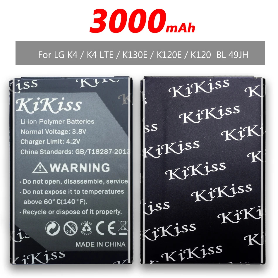 KiKiss телефон Перезаряжаемые Батарея 3000 мАч, BL-49JH для LG K4 K4 LTE K130E K120E K120 BL 49JH замена батареи